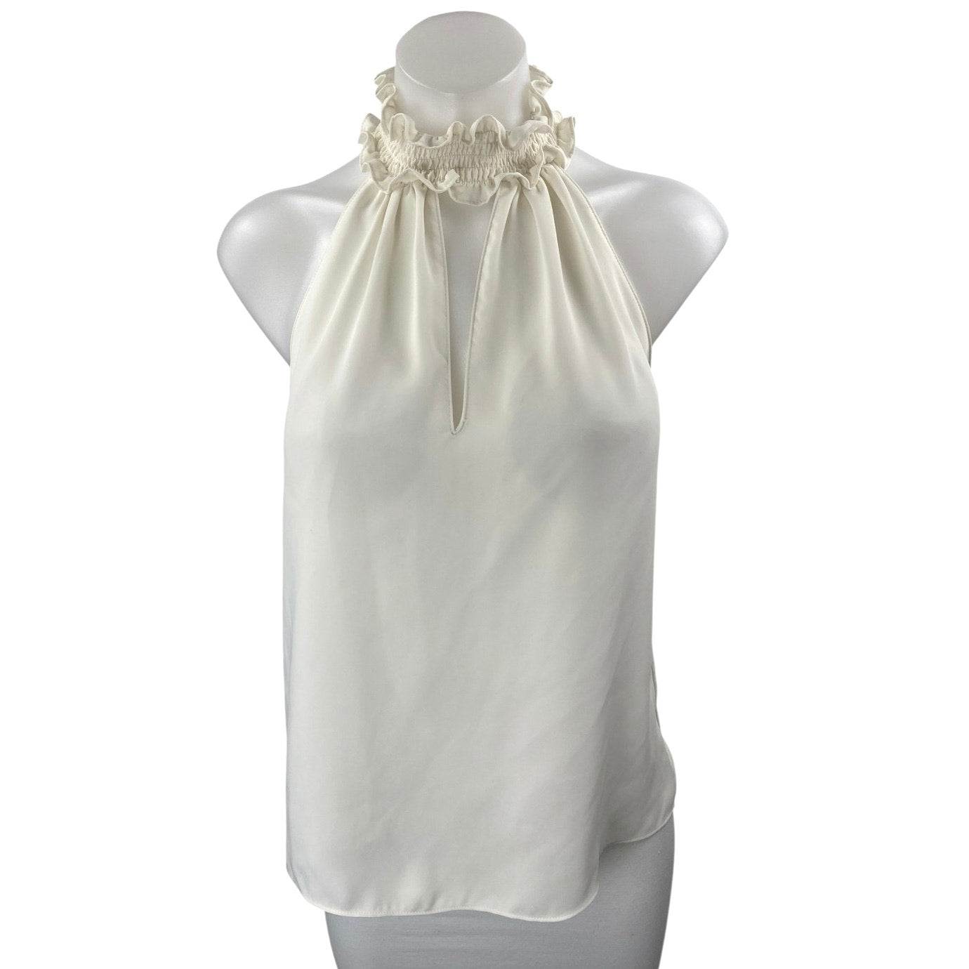 Amanda Uprichard White Ruffle Smocked Halter Turtleneck Sleeveless Tank Top Size S