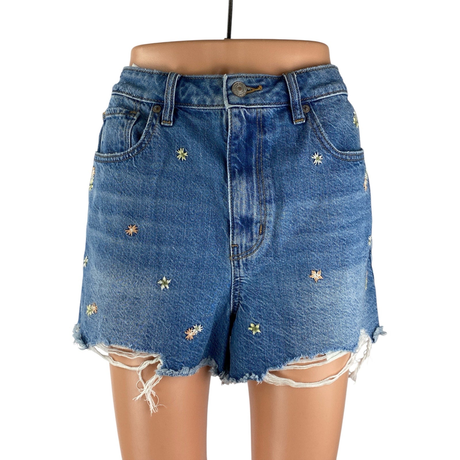 American Eagle Outfitters Blue Floral Embroidered High Rise Frayed Cutoff Denim Shorts 12