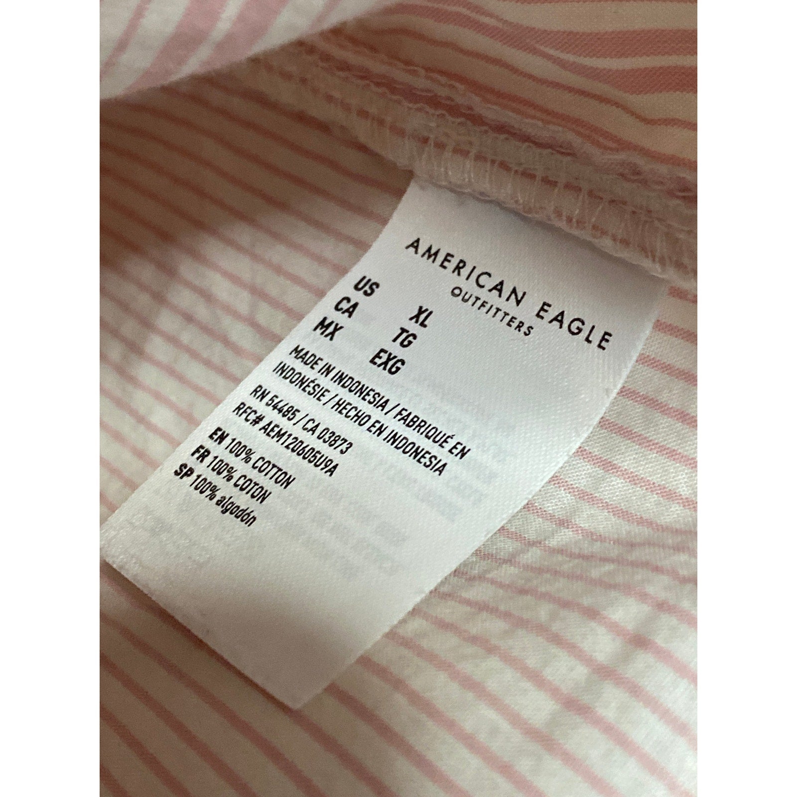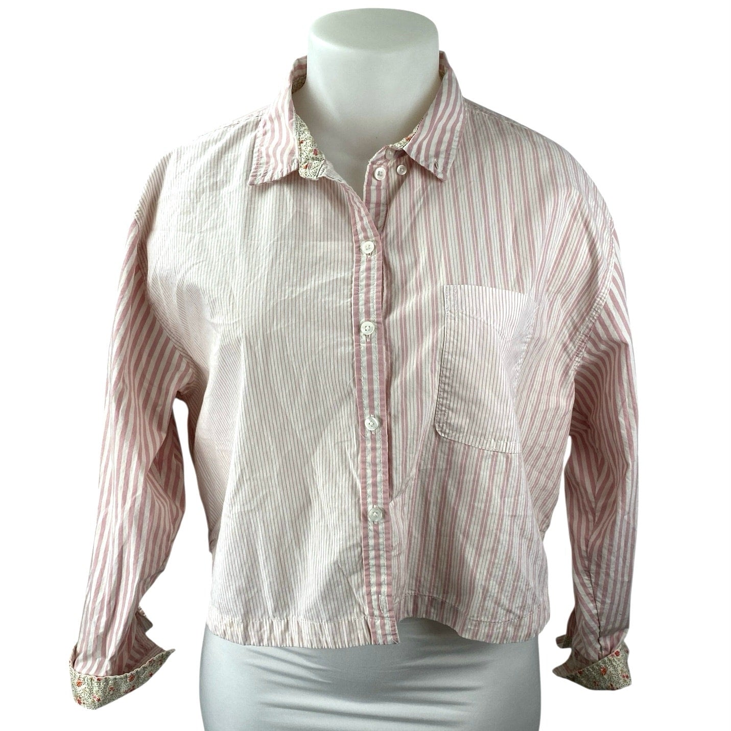 American Eagle Pink Stripe Collared Long Sleeve Cropped Button Down Shirt Size XL