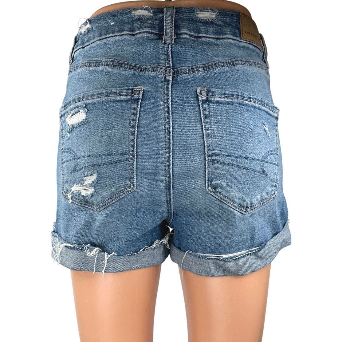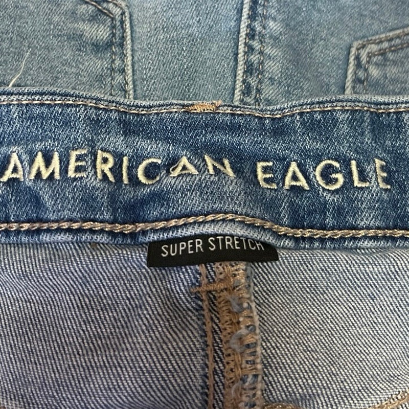 American Eagle Super Stretch Blue Distressed High Waisted Denim Jean Shorts 4