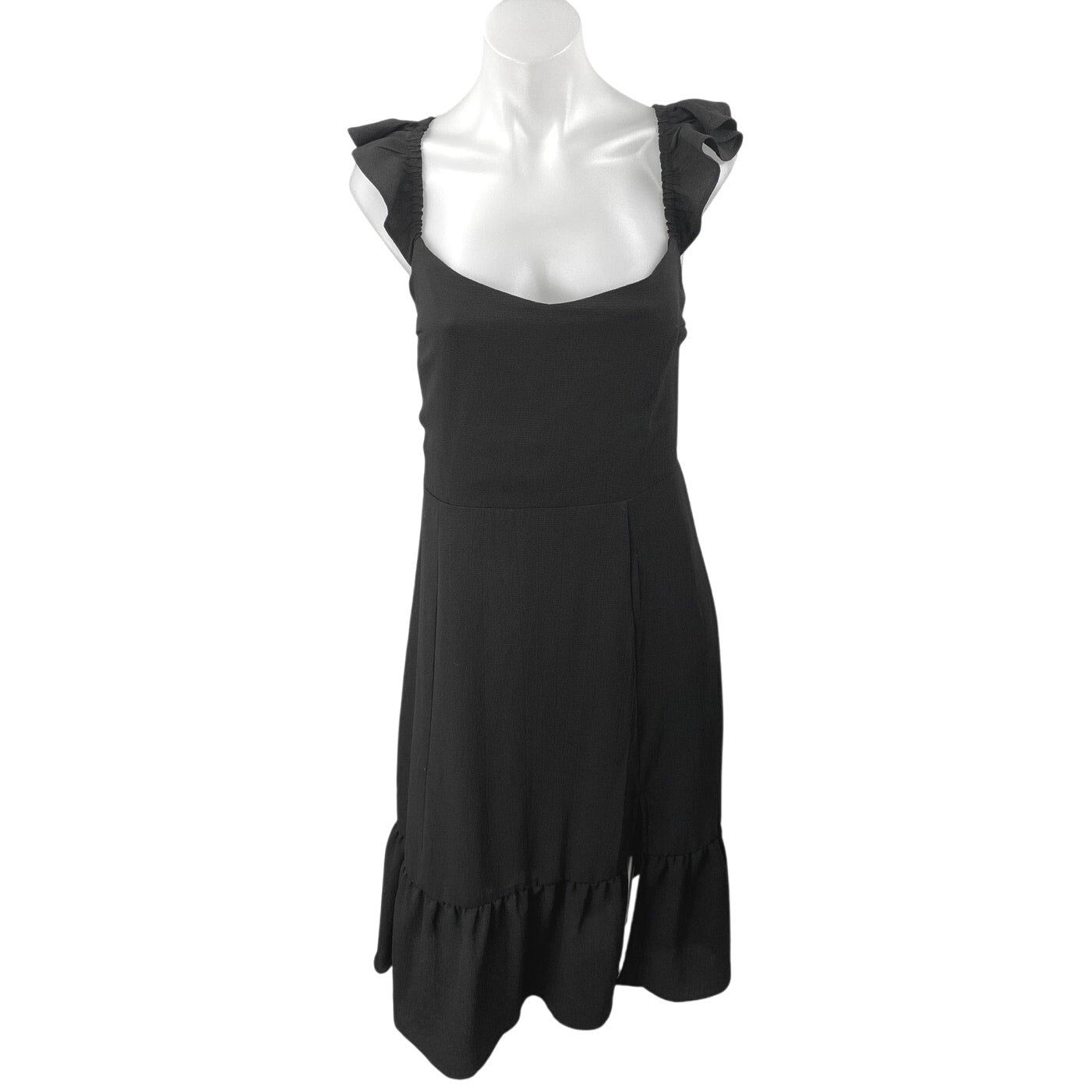 And Now This Women's Black Sleeveless Ruffle Sleeve Flounce Midi A-Line Dress L