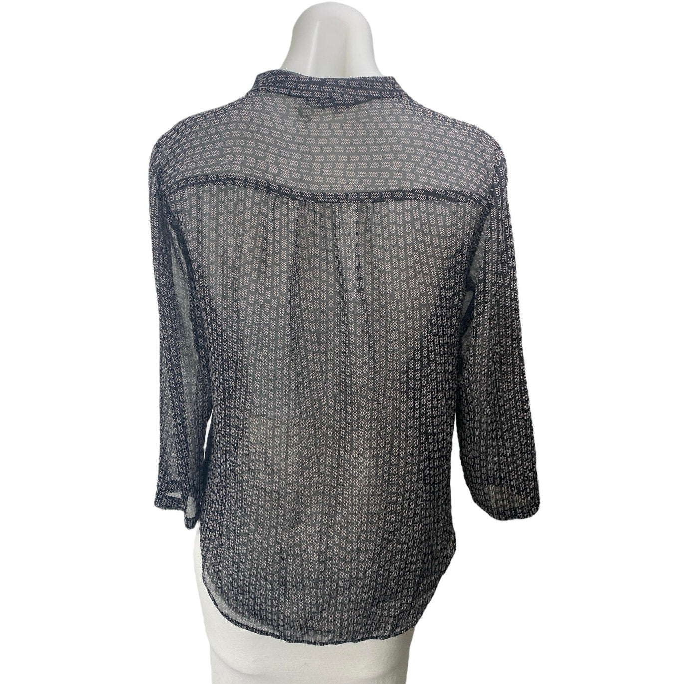 Ann Taylor LOFT Black Chevron Long Sleeve V Neck Faux Wrap Blouse Top Size XS