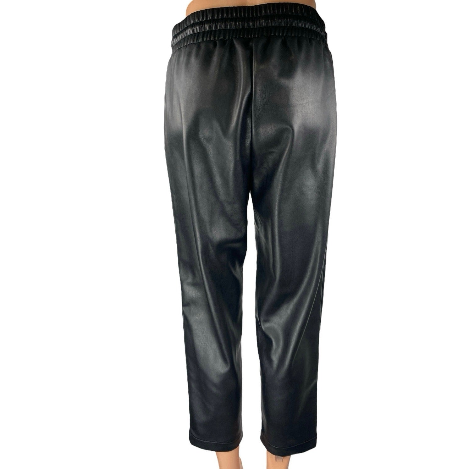 Ann Taylor Loft Women's Black Faux Vegan Leather High Waist Straight Tapered Trousers Pants S