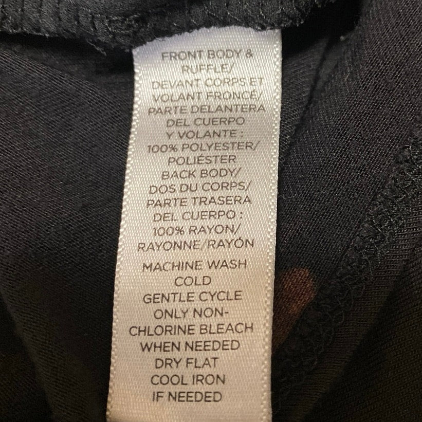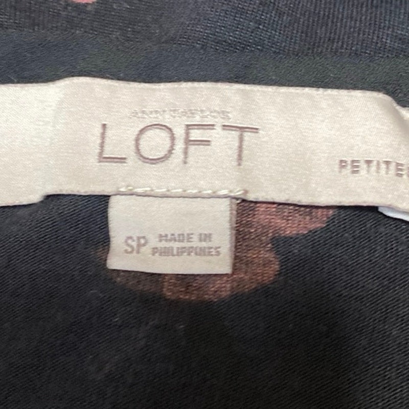 Ann Taylor LOFT Black Floral Short Flutter Sleeve Crew Neck Blouse Top Size S