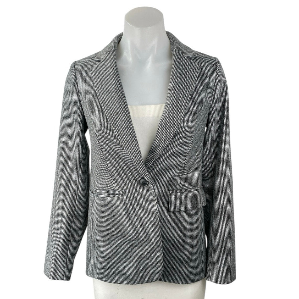 Ann Taylor LOFT Black Houndstooth Elbow Patch Long Sleeve Blazer Coat Jacket 0