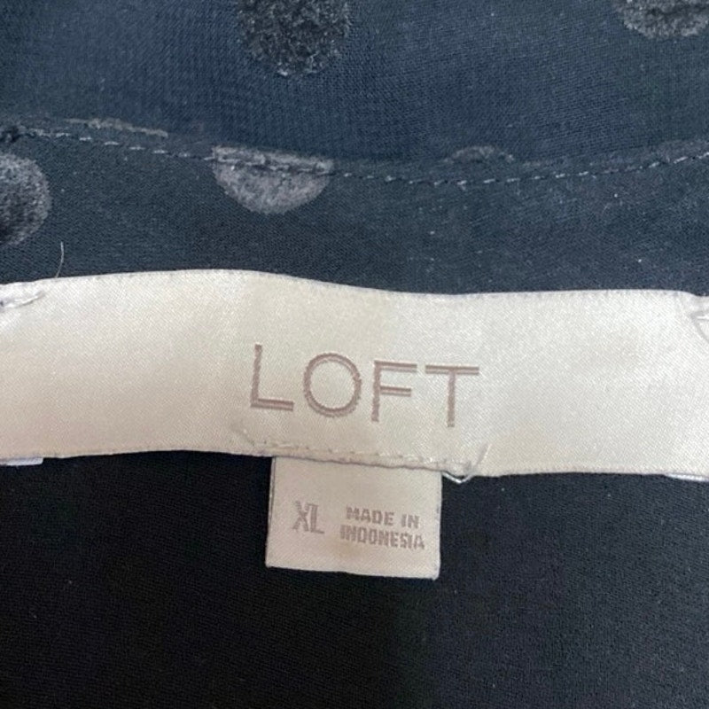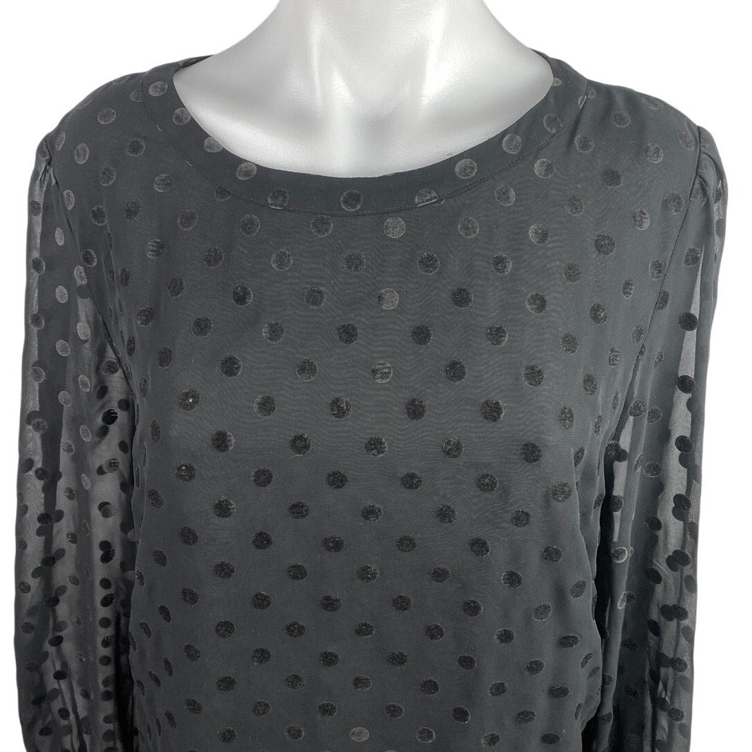 Ann Taylor LOFT Black Sheer Long Balloon Sleeve Polka Dots Blouse Top Size XL