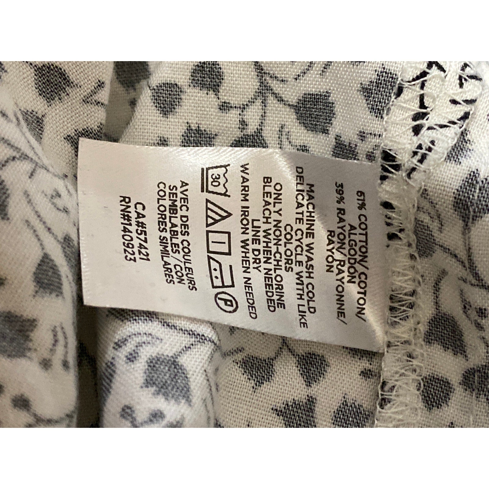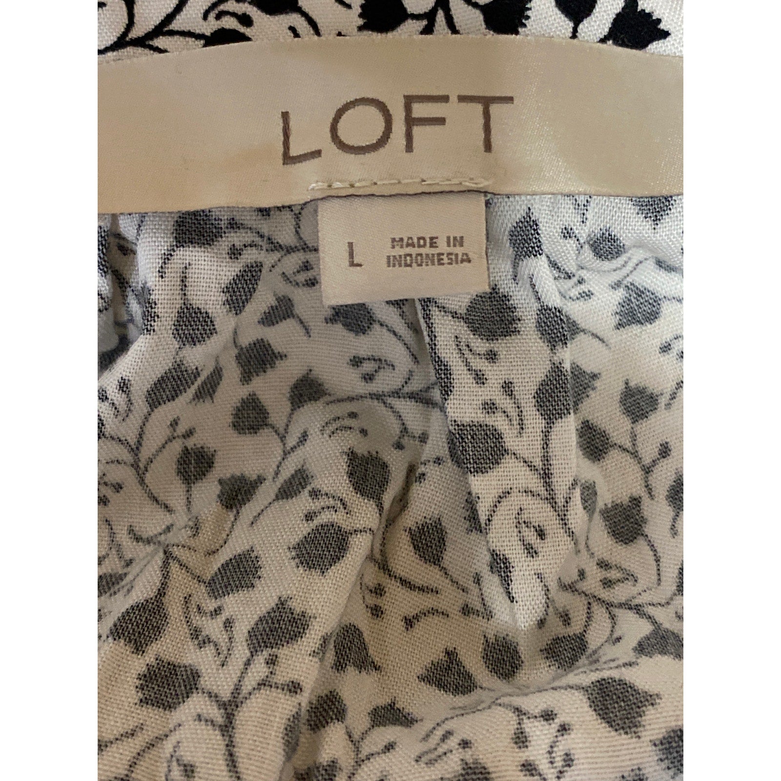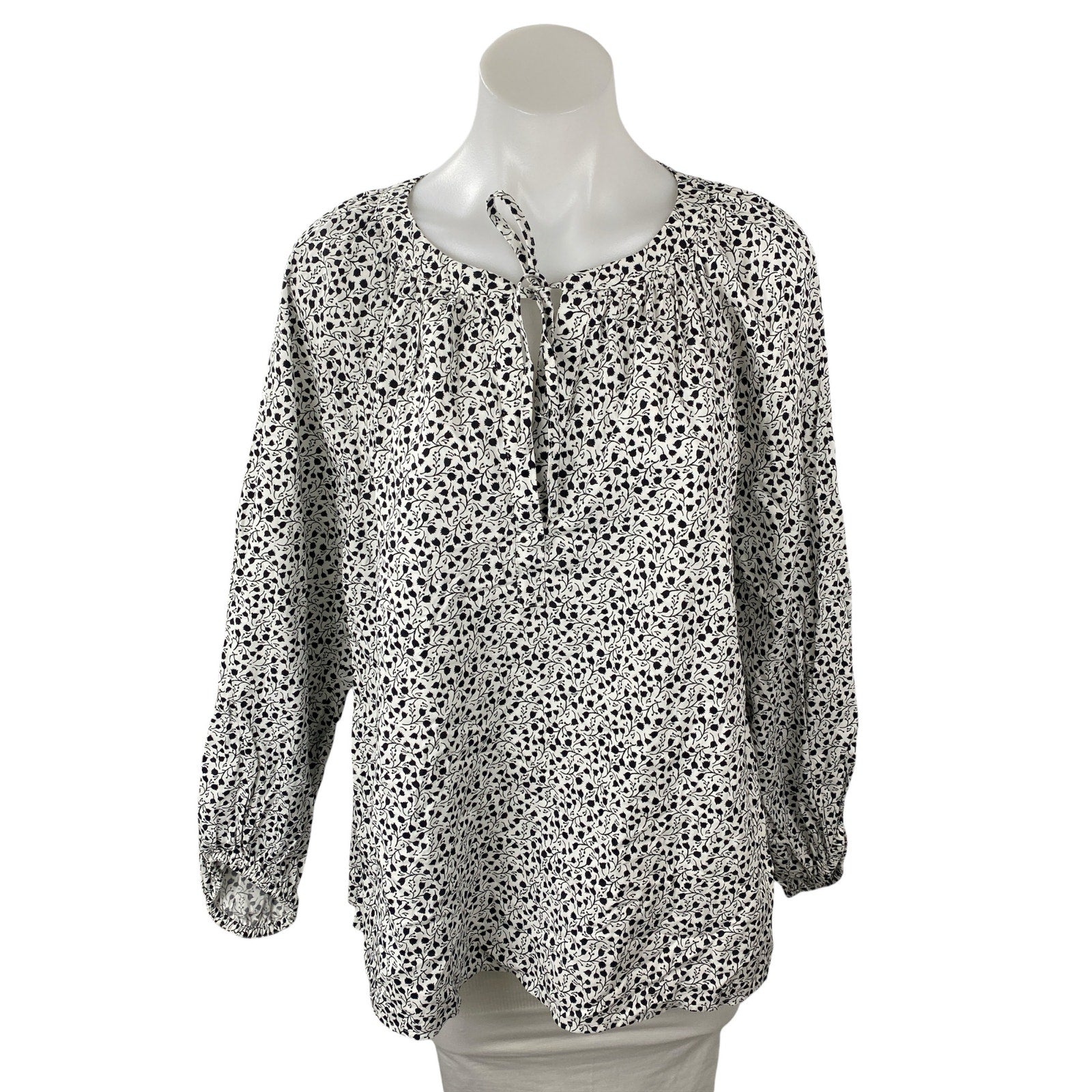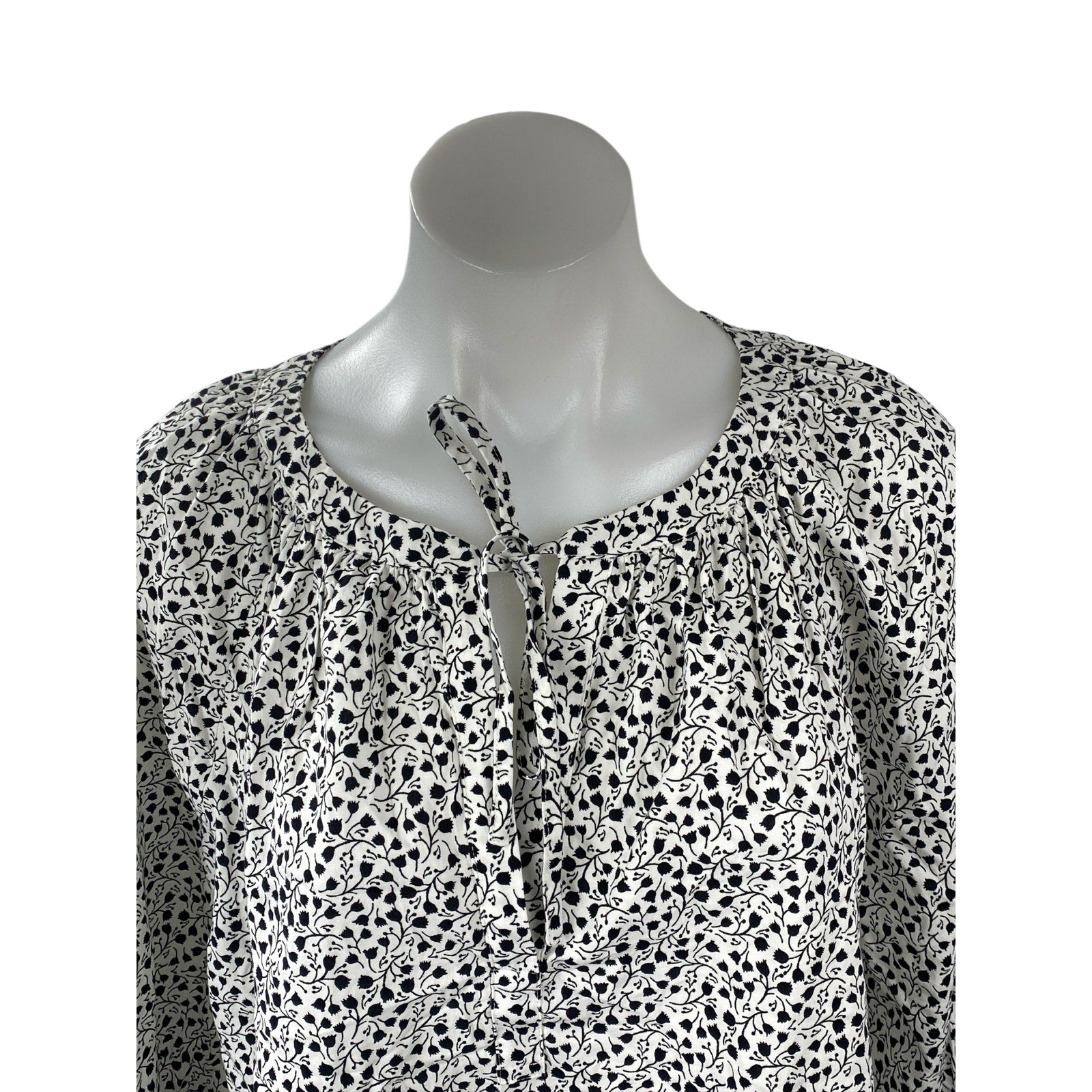 Ann Taylor Loft Black White Floral Tie Neck Long Sleeve Peasant Blouse Top Sz L
