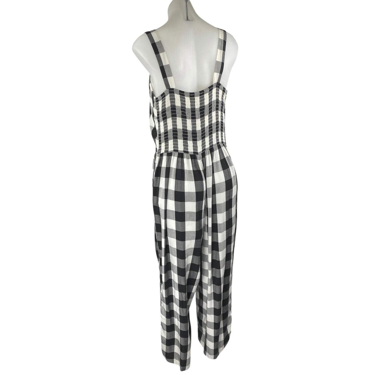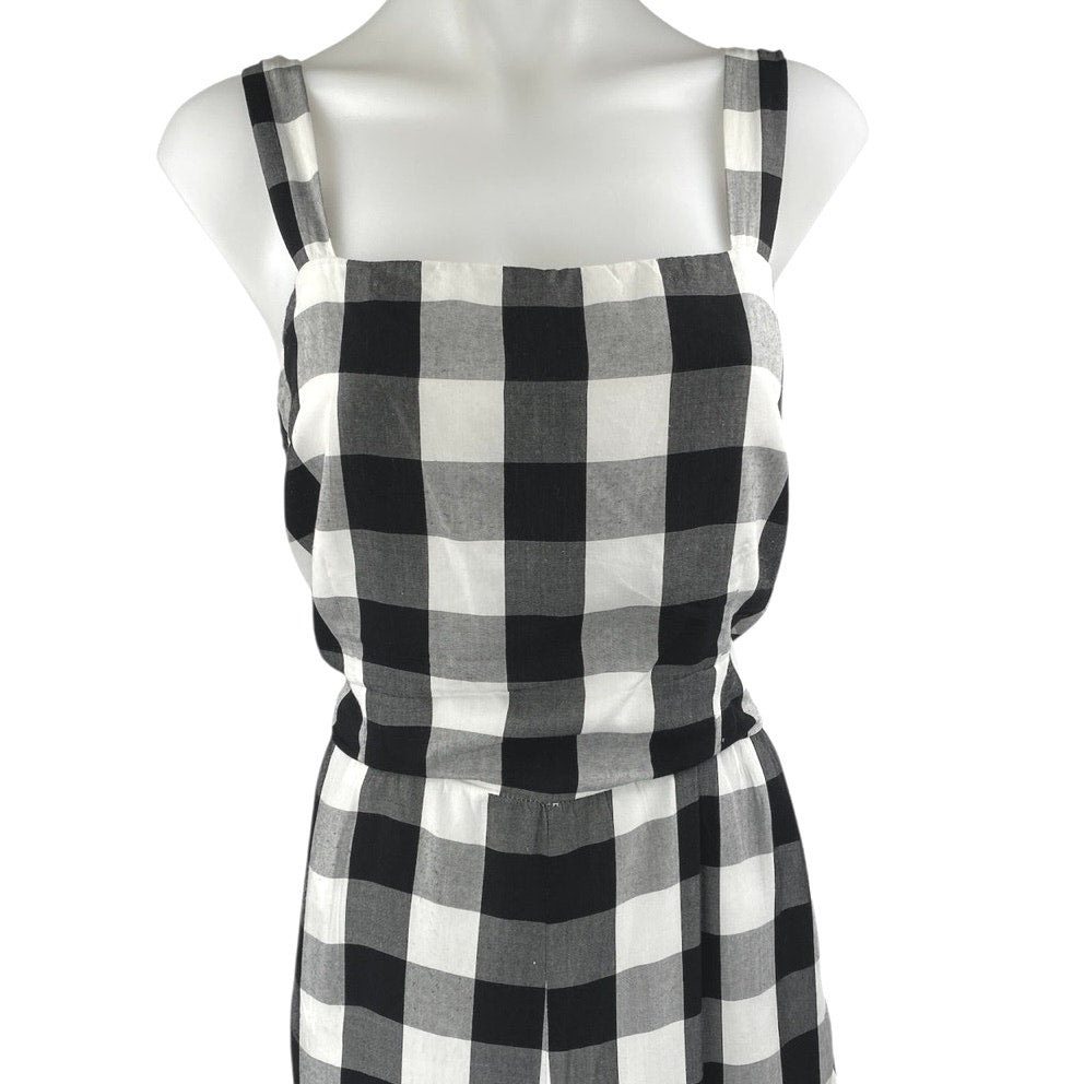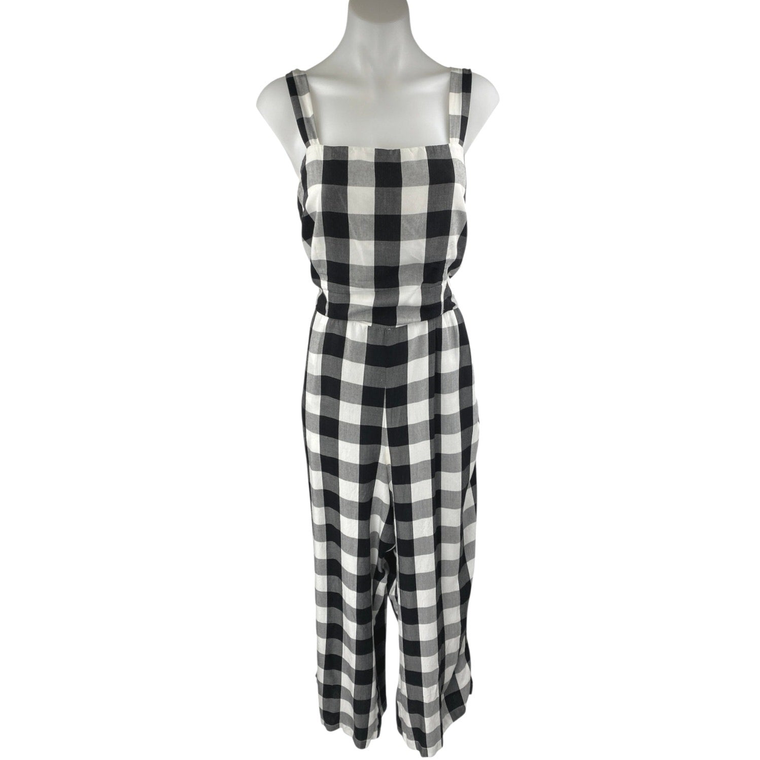 Ann Taylor LOFT Black White Gingham Check Sleeveless Cropped Jumpsuit Size M