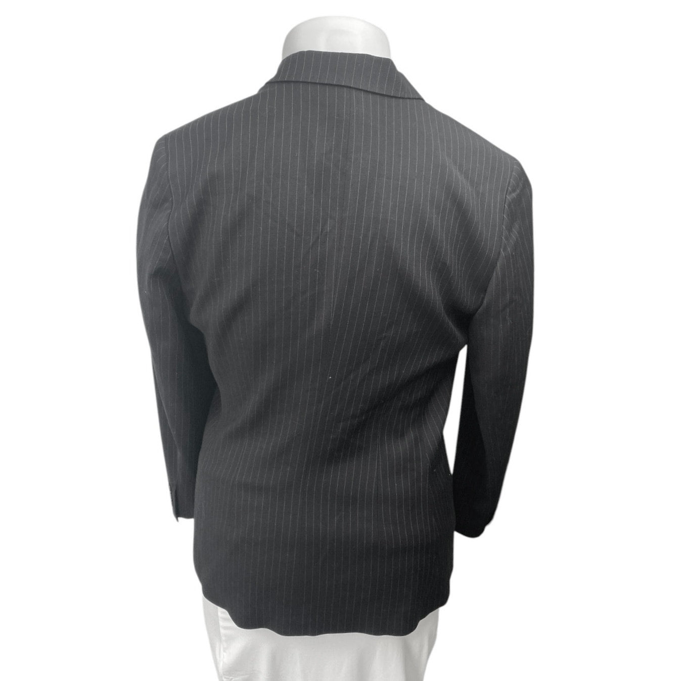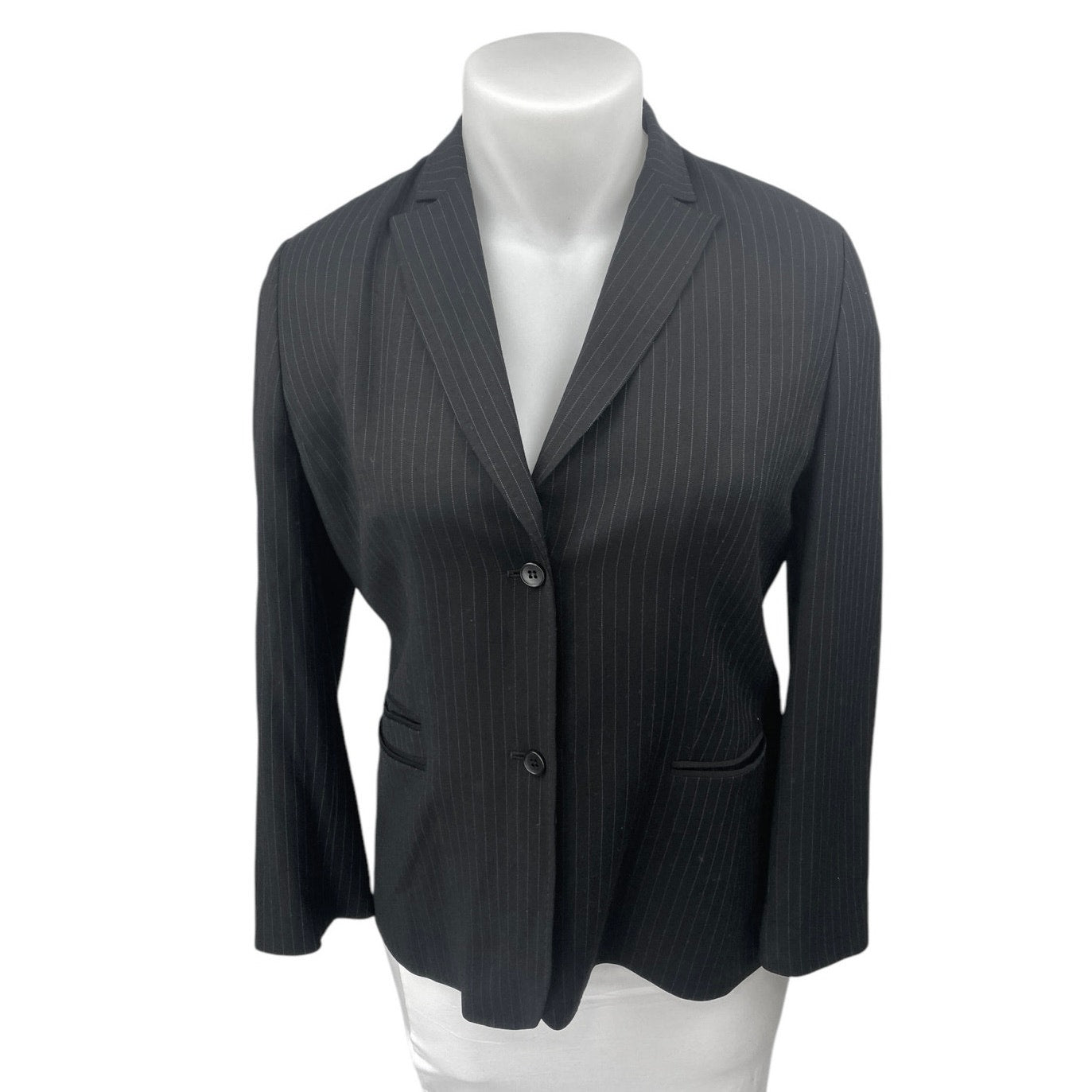 Ann Taylor LOFT Black Wool Pinstriped Colalr Long Sleeve Blazer Coat Jacket 14