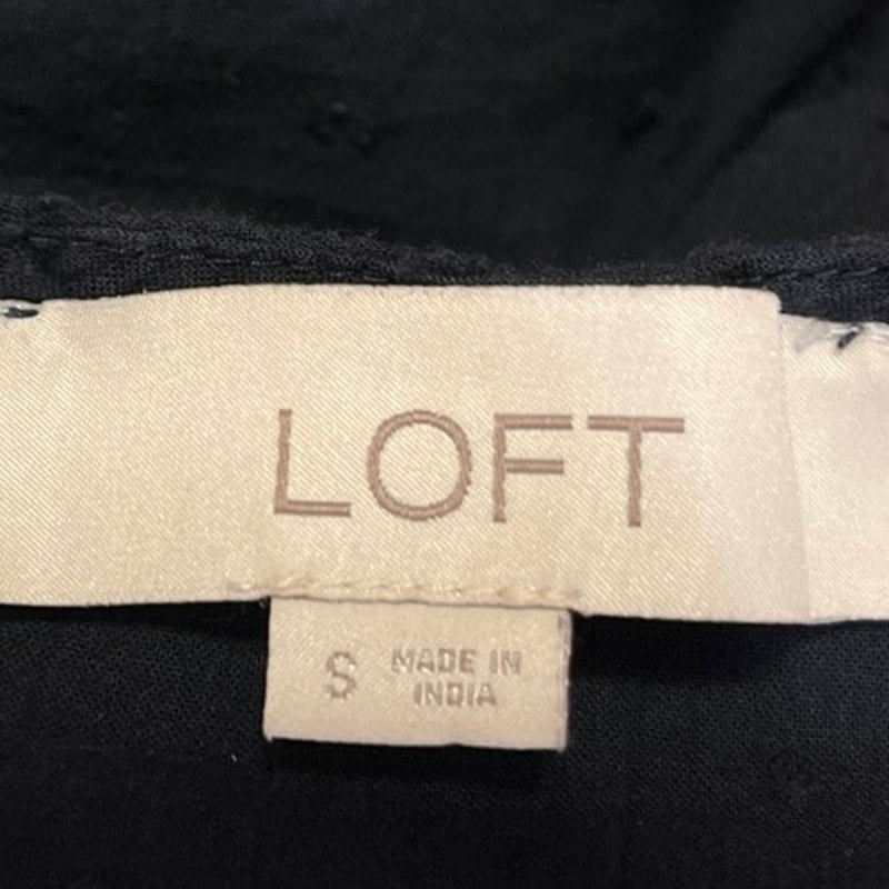 Ann Taylor LOFT Blue Polka Swiss Dot Puff Sleeve Back Button Casual Blouse Top S