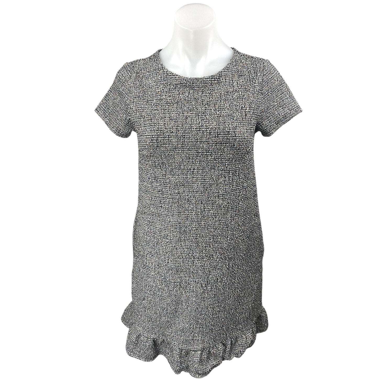 Ann Taylor LOFT Gray Short Sleeve Crew Neck Ruffle Mini Shift Dress Size XS