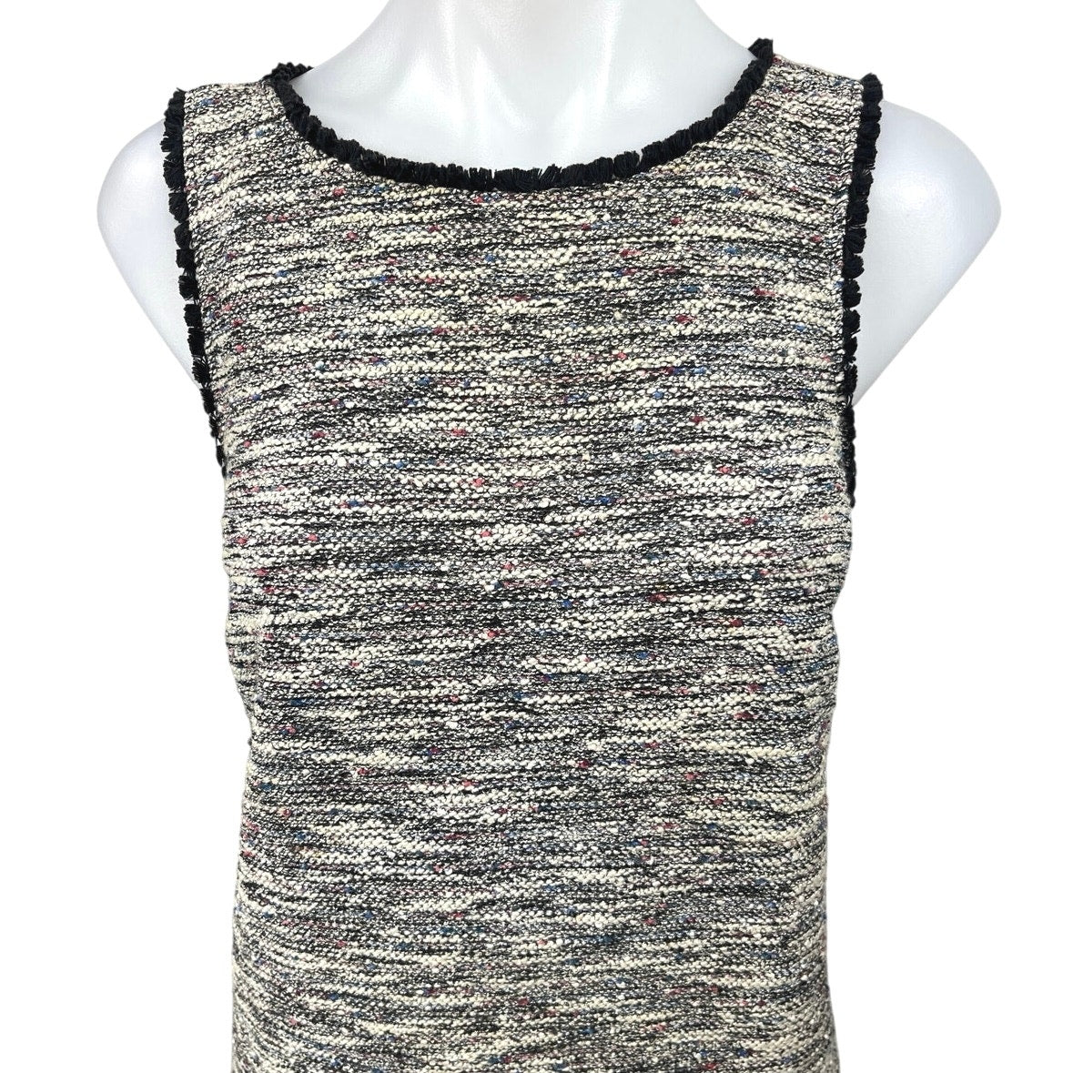 Ann Taylor LOFT Gray Tweed Sleeveless Fringe Back Zip Mini Shift Dress Size S