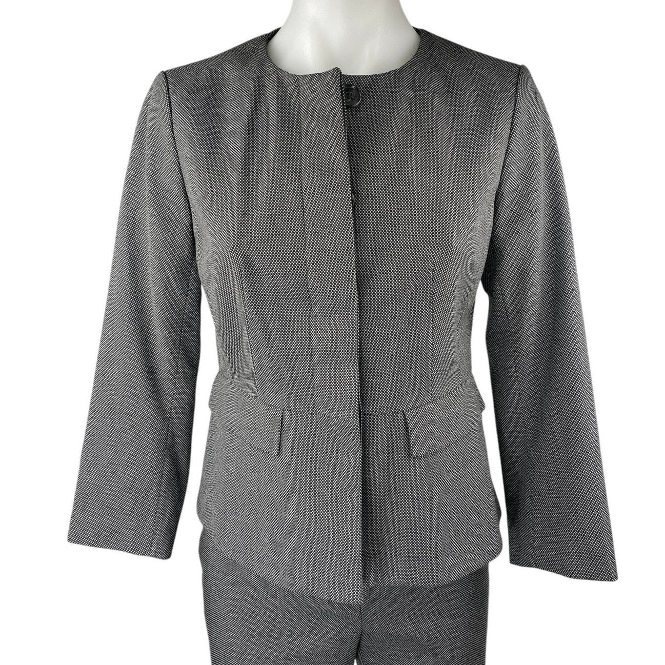 Ann Taylor Women's Gray Button Down Blazer & Trousers Pants 2Pc Suit Set Sz 0/2