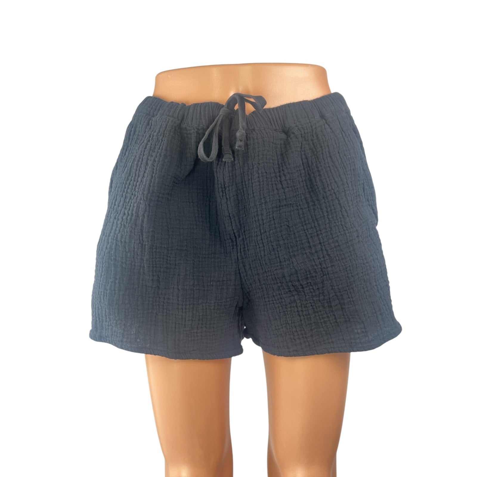 Aritzia Wilfred Free Sail Black Drawstring Wide Leg Casual Lounge Shorts Size M