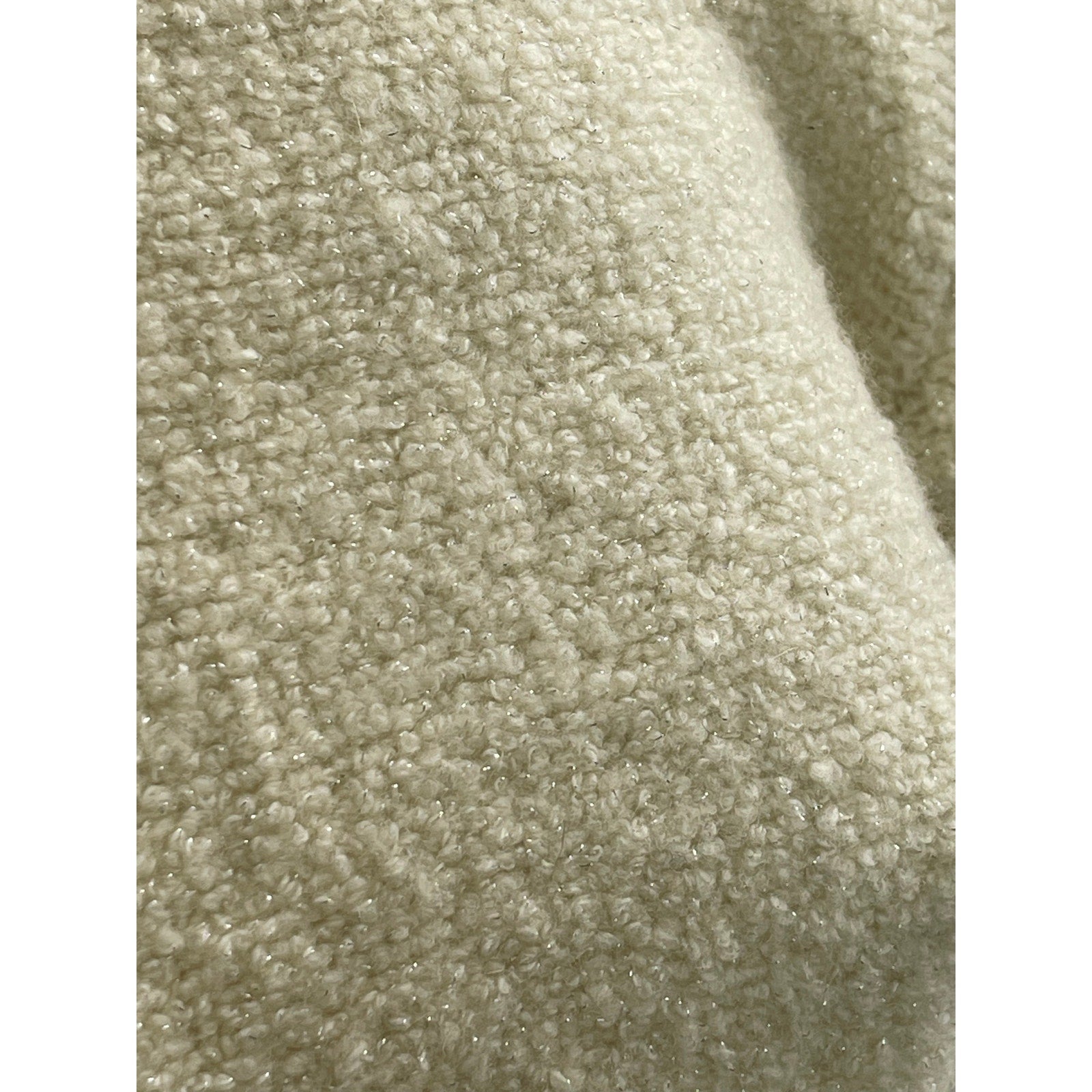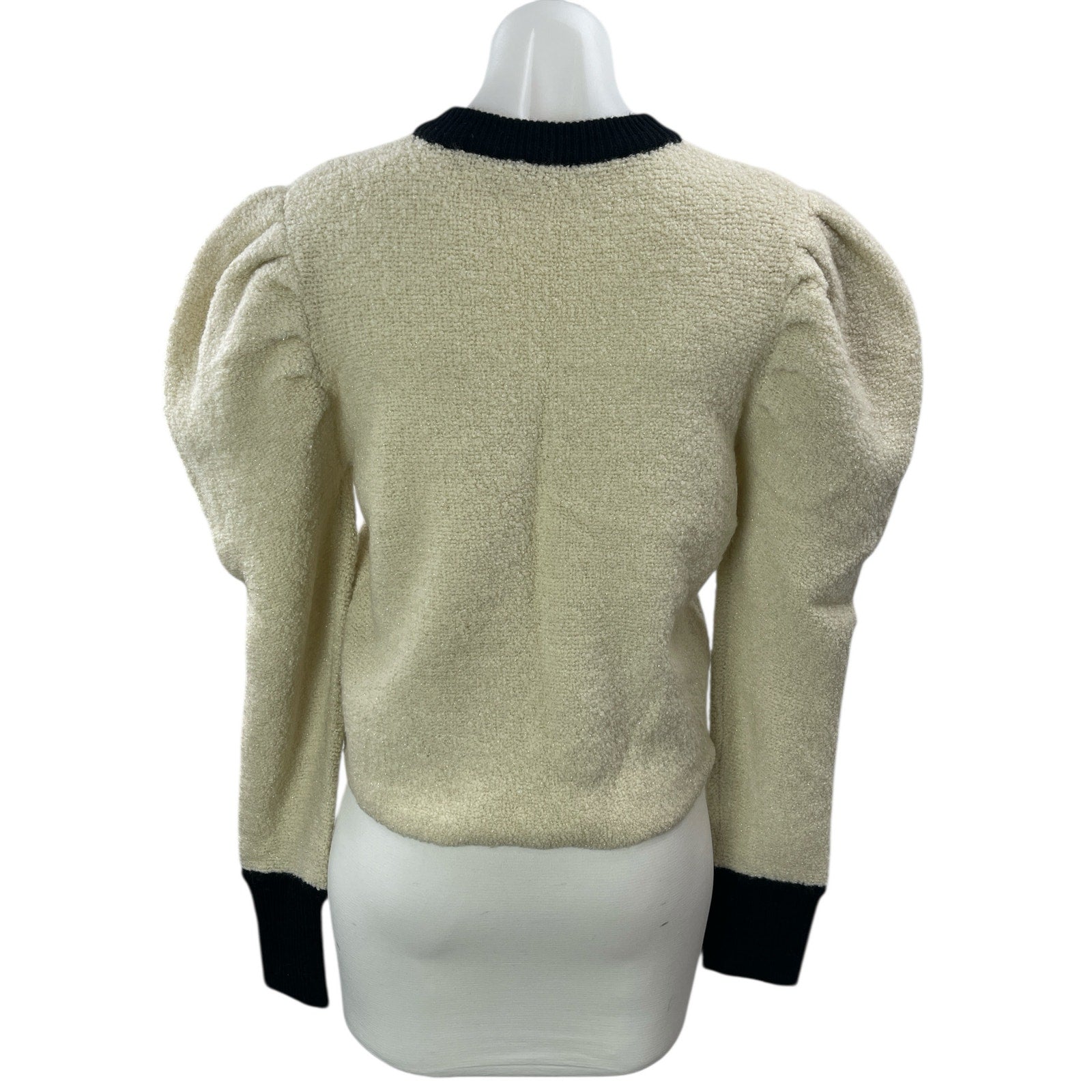 Autumn Cashmere Beige Black Crew Neck Long Puff Sleeves Crop Sweater Top Size M/L