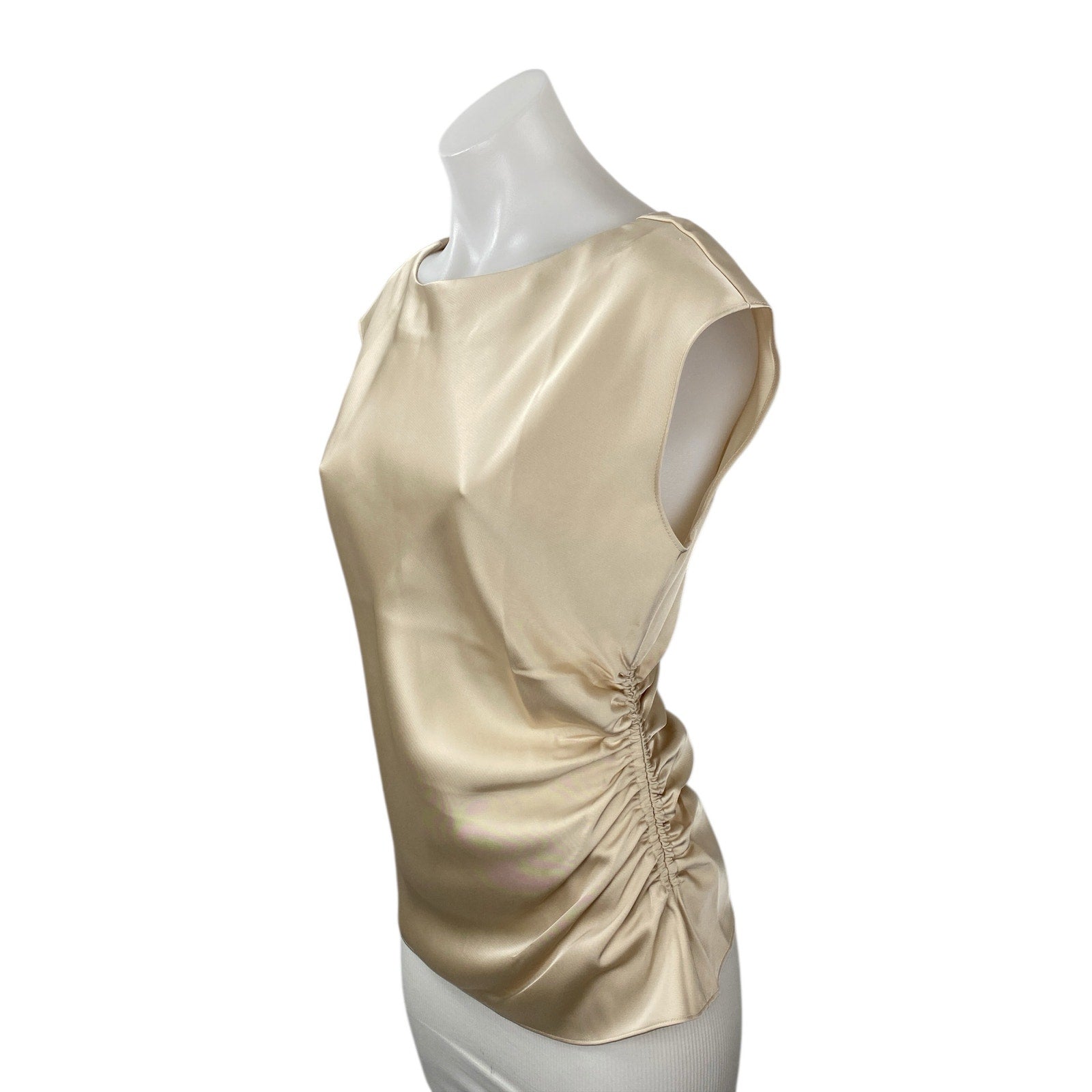 Banana Republic Beige Champagne Silk Satin Drop Sleeve Ruched Blouse Top Size 4
