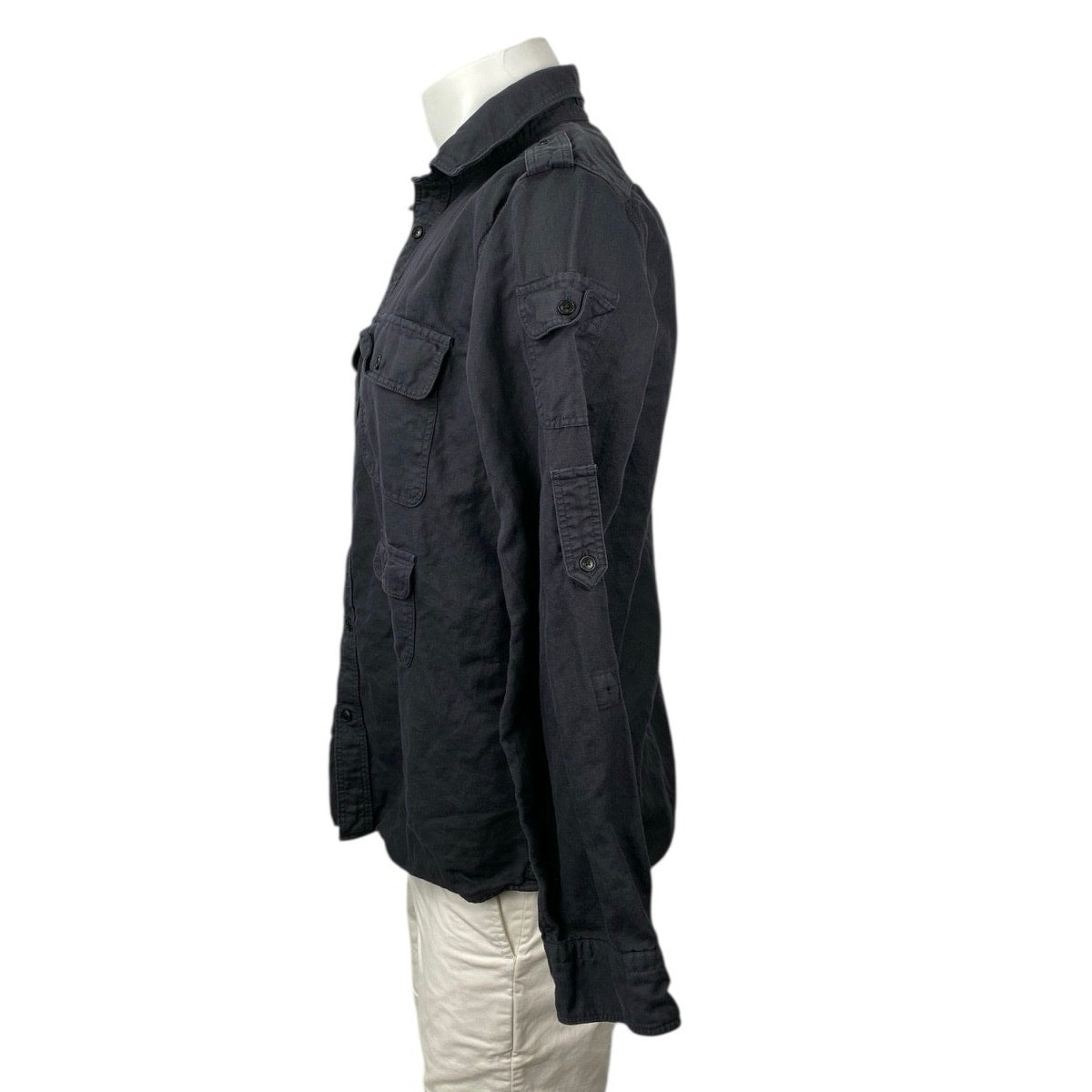 Banana Republic Men's Black Linen Untucked Long Sleeve Button Down Cargo Shirt M