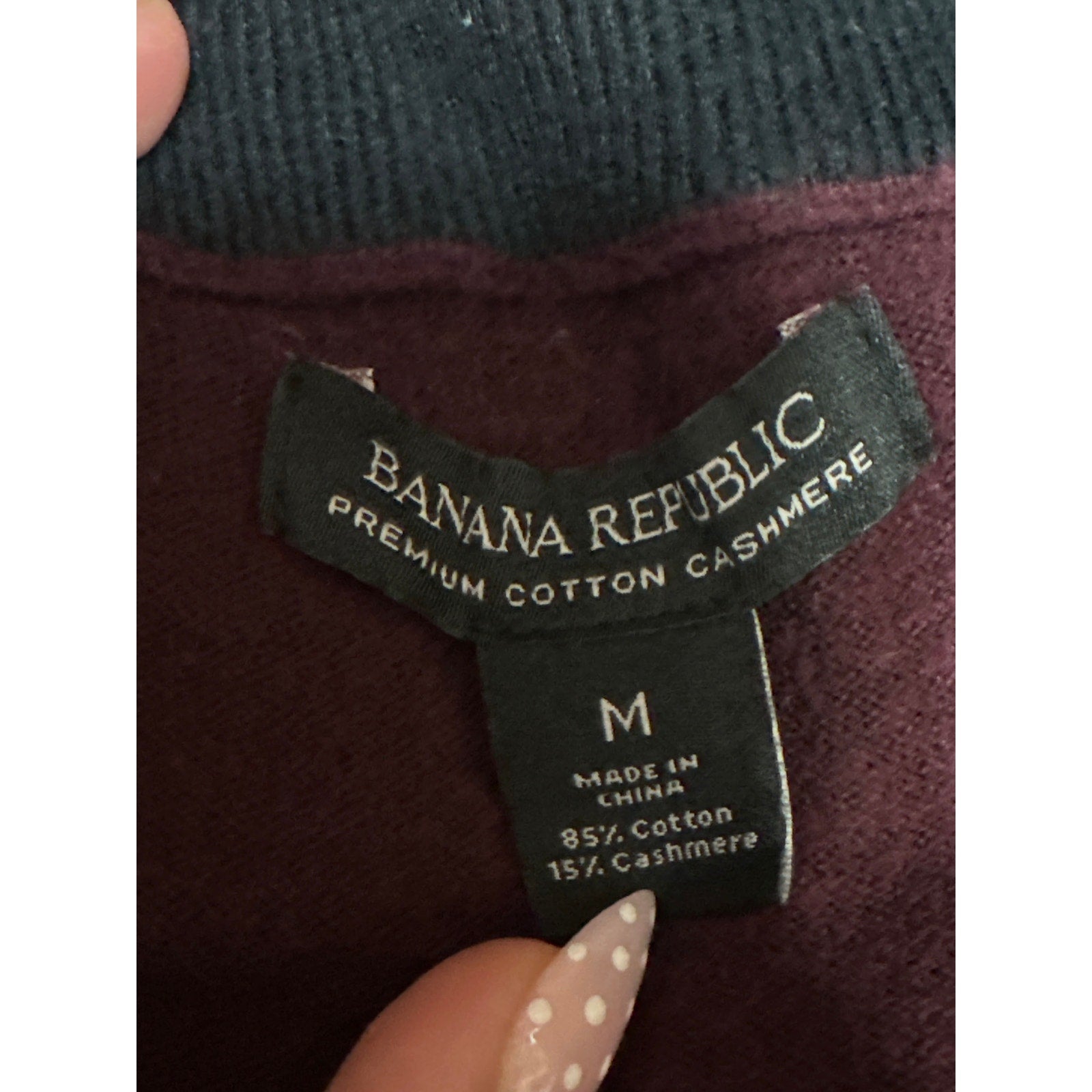 Banana Republic Men's Maroon Cashmere Long Sleeve Quarter Zip Sweater Top Size M