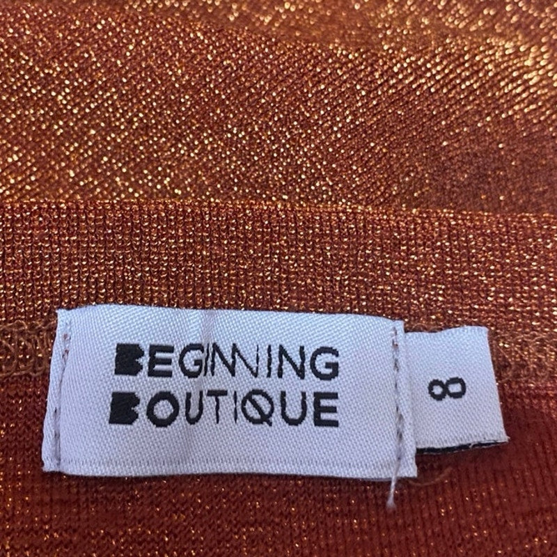 Beginning Boutique Stassie Rust Brown Metallic Glitter Bandeau Open back Halter Top Flare Pants 2 Pc Set 8