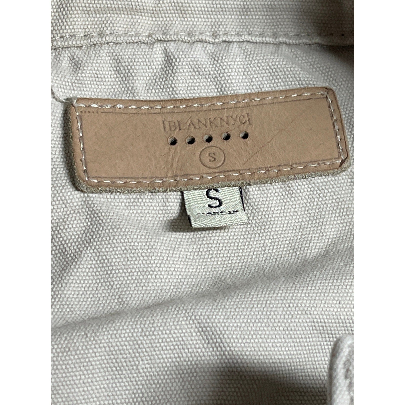 BlankNYC Women's Beige Long Sleeve Utility Button Down Crop Denim Jean Jacket S