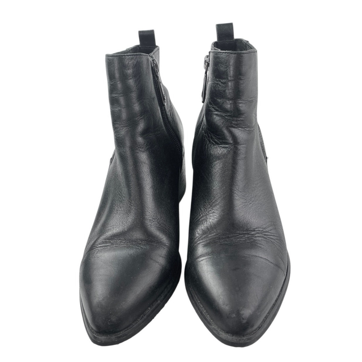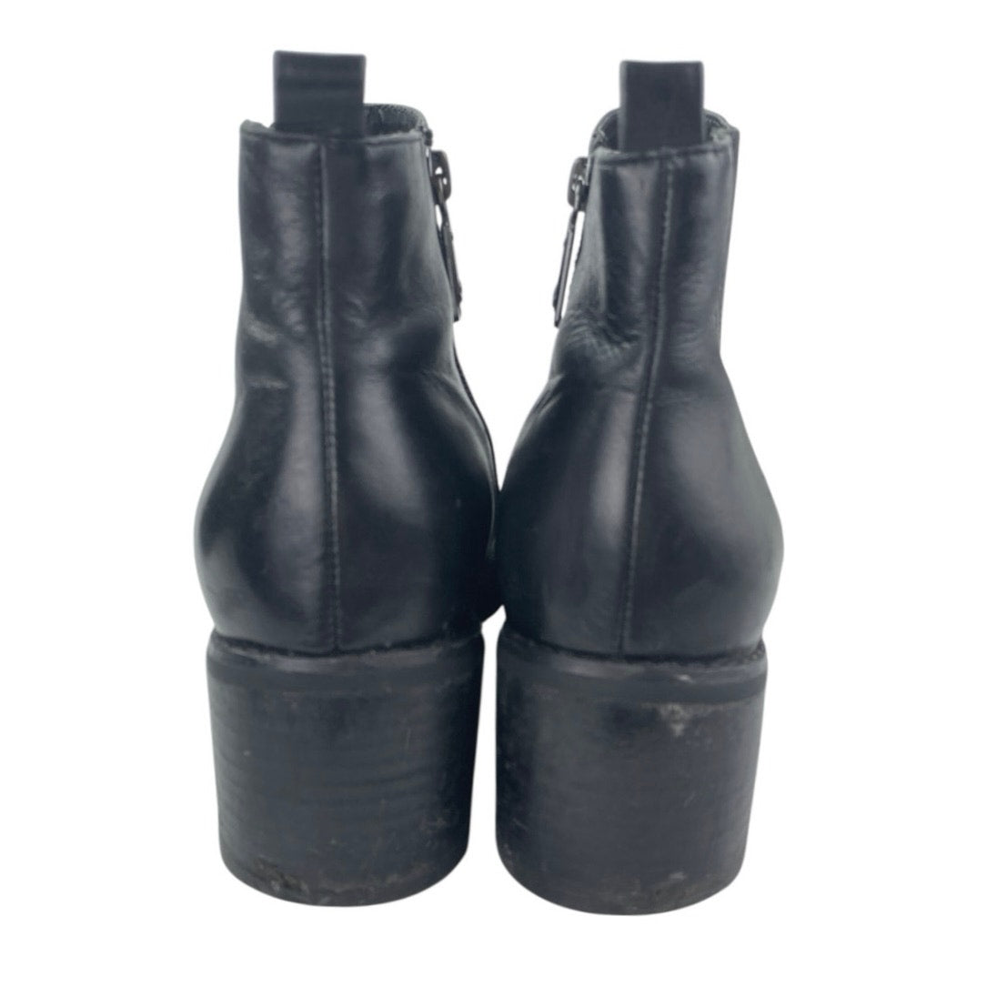 Blondo Elvina Women's Black Leather Zip Pointed Toe Block Heels Ankle Boots Size 8.5M