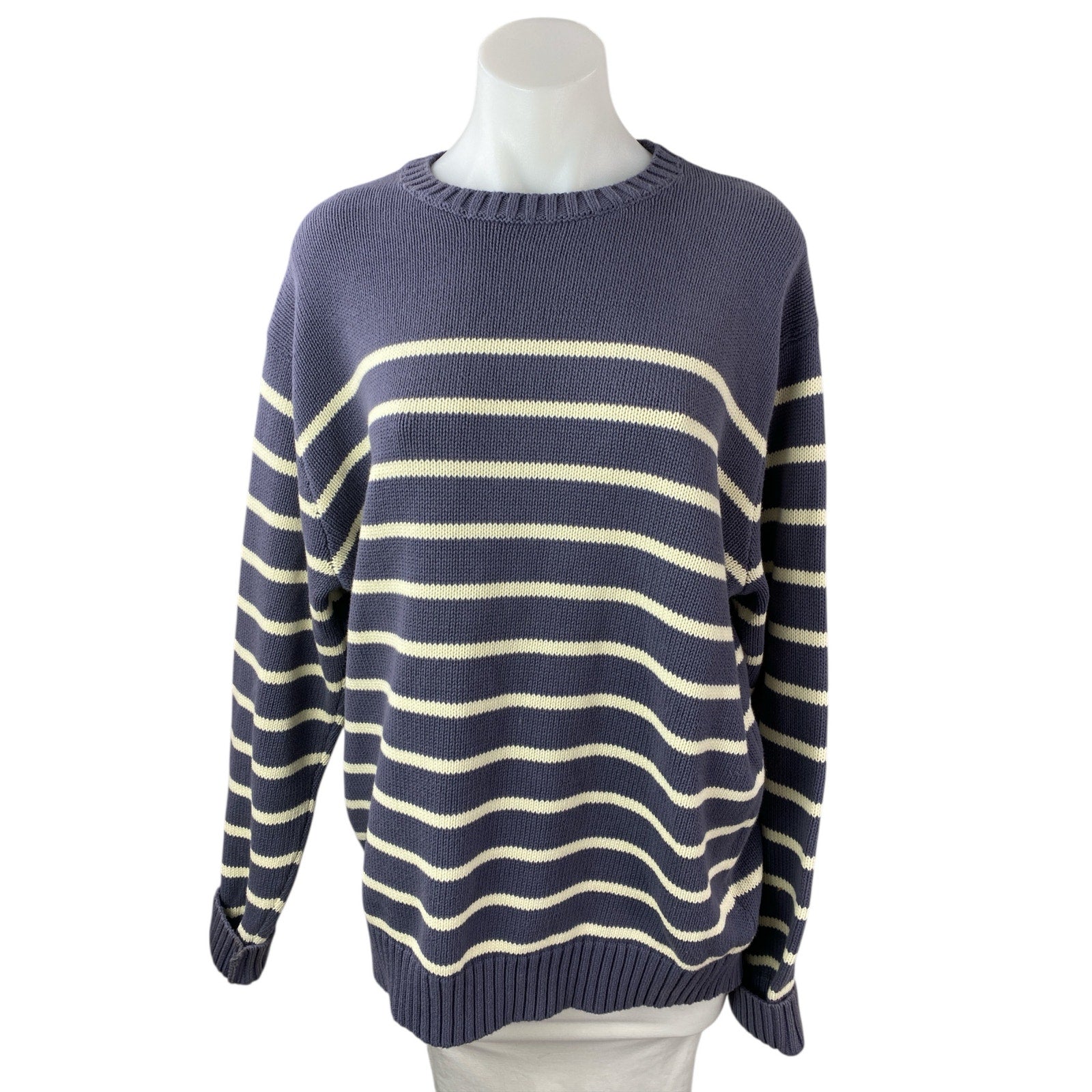 Brandy Melville Women's Purple White Striped Knit Long Sleeve Sweater Top Size L
