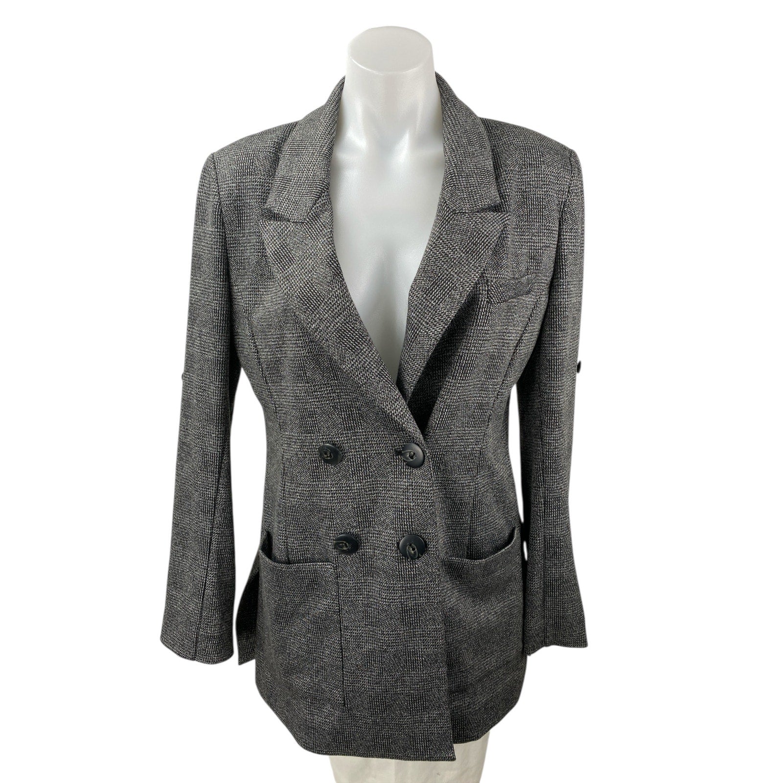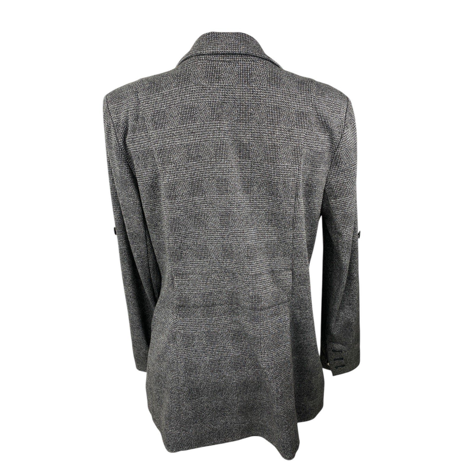 Cabi Gray Plaid Notch Collar Long Sleeve Double Breasted Blazer Coat Jacket Sz M