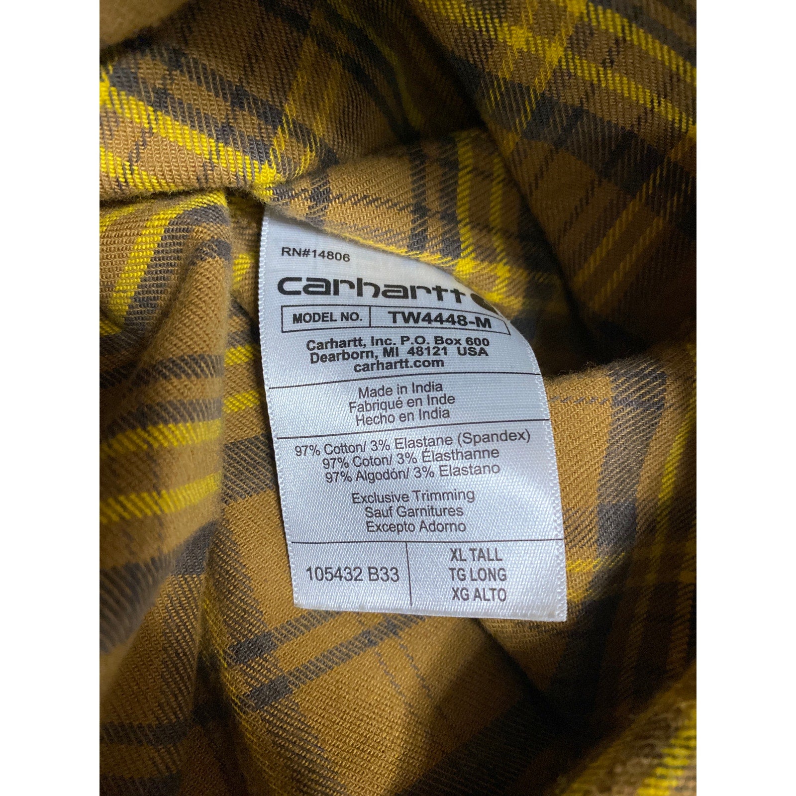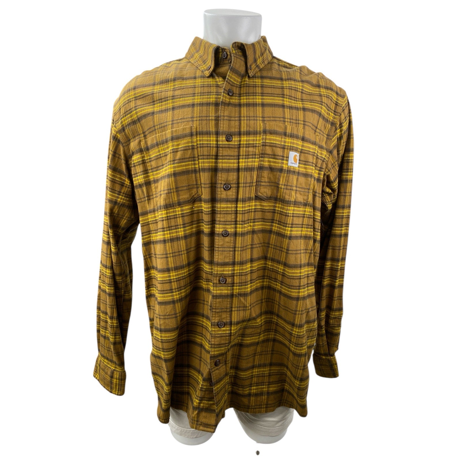 Carhartt Rugged Flex Yellow Plaid Relaxed Fit Long Sleeve Button Up Shirt Top XL