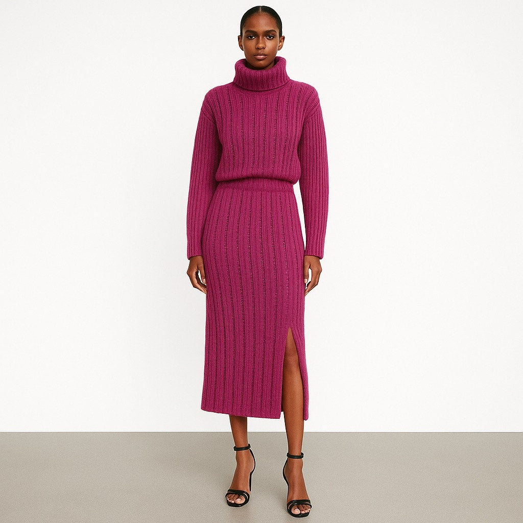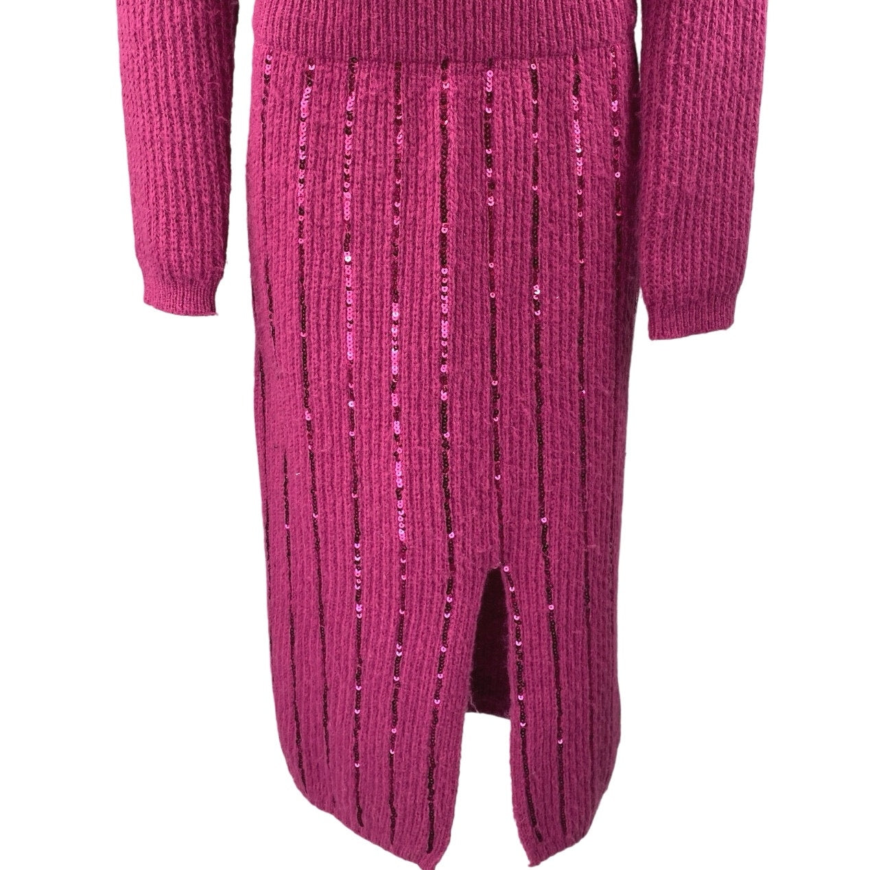 Cider Pink Wool Sequin Long Sleeve Knit 2pc Sweater Skirt Matching Set Size XS