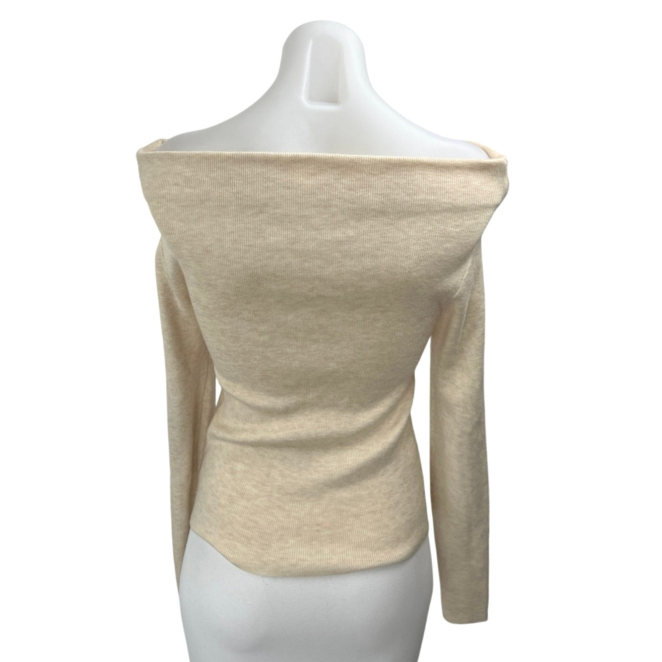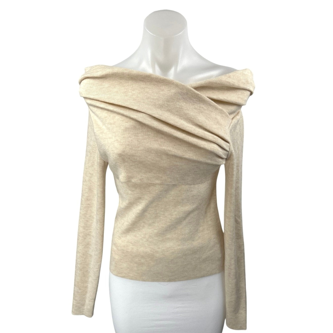 Commense Women's Beige Off The Shoulder Long Sleeve Knit Sweater Top Size S