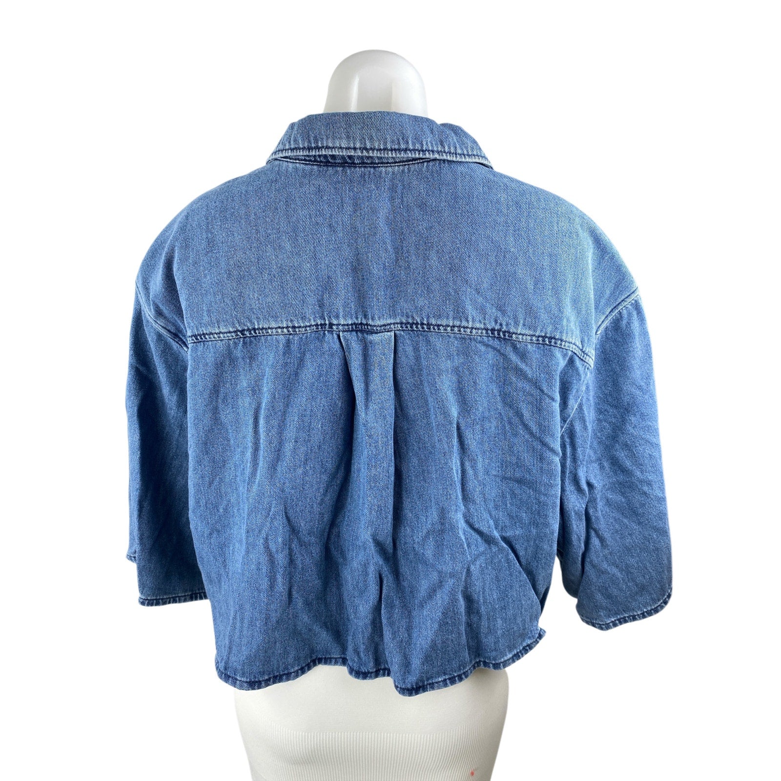 COS Blue Oversized Collared Half Sleeve Button Up Crop Denim Shirt Blouse Top 14