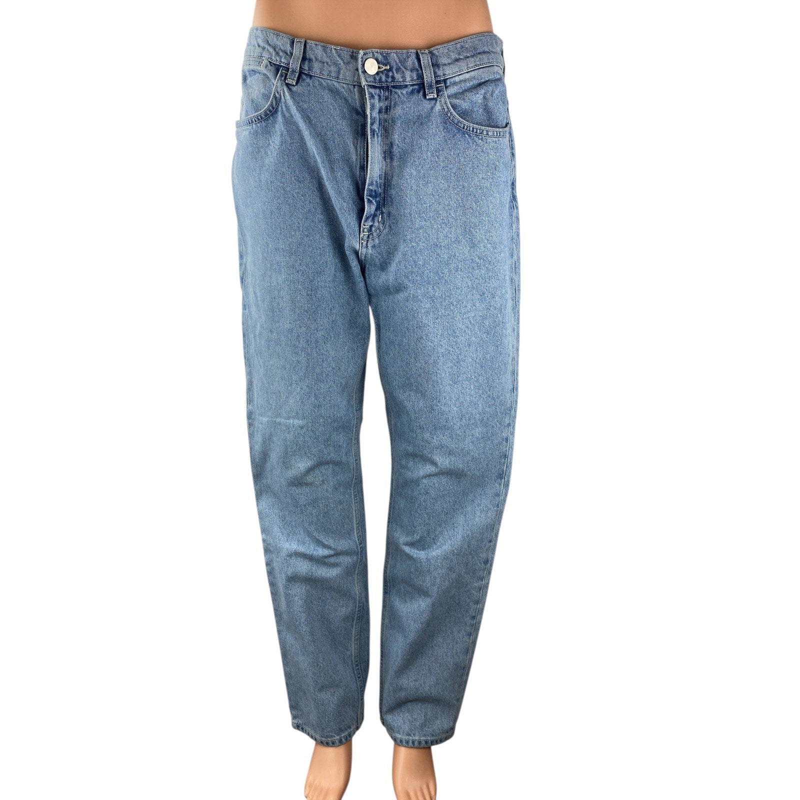 COS Women's Blue High Waisted Medium Wash Barrel Tapered Denim Jeans Size 31