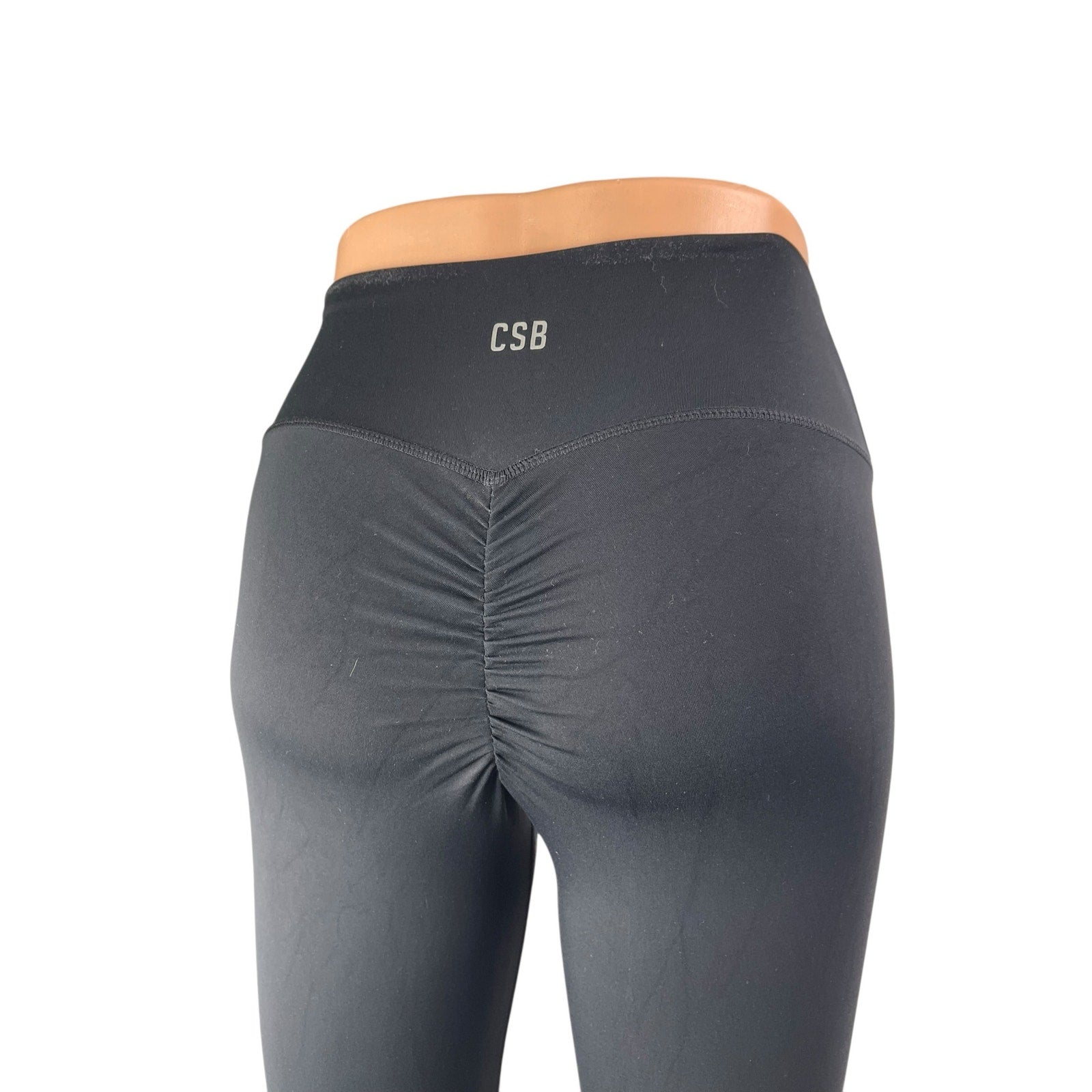 CSB Women's Black Mid Waist Ruched Skinny Athletic Activewear Leggings Pants S