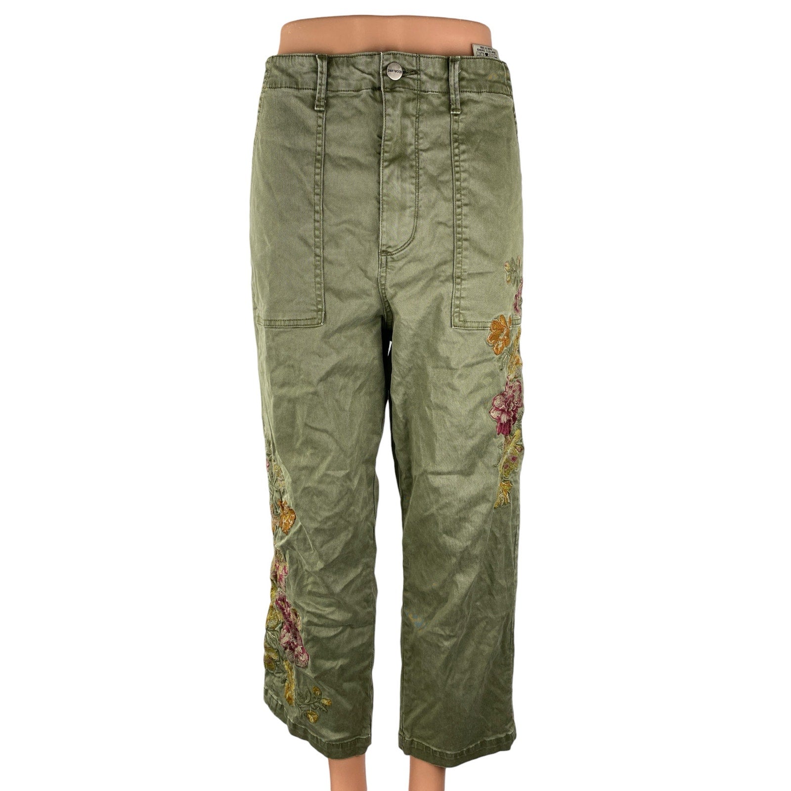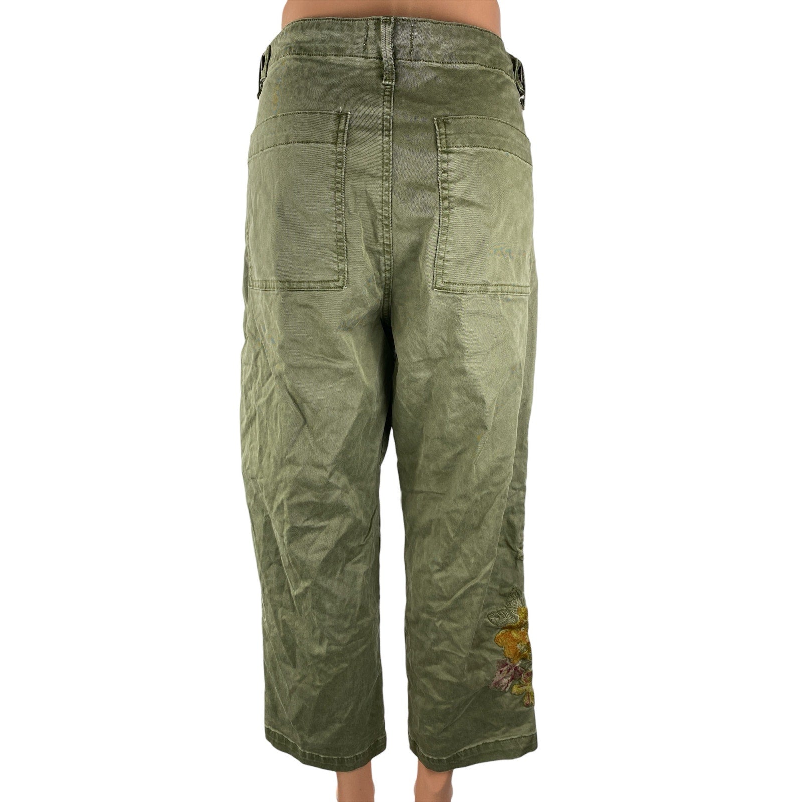 Driftwood Womens Green Floral Embroidered High Rise Straight Denim Jeans Size XL