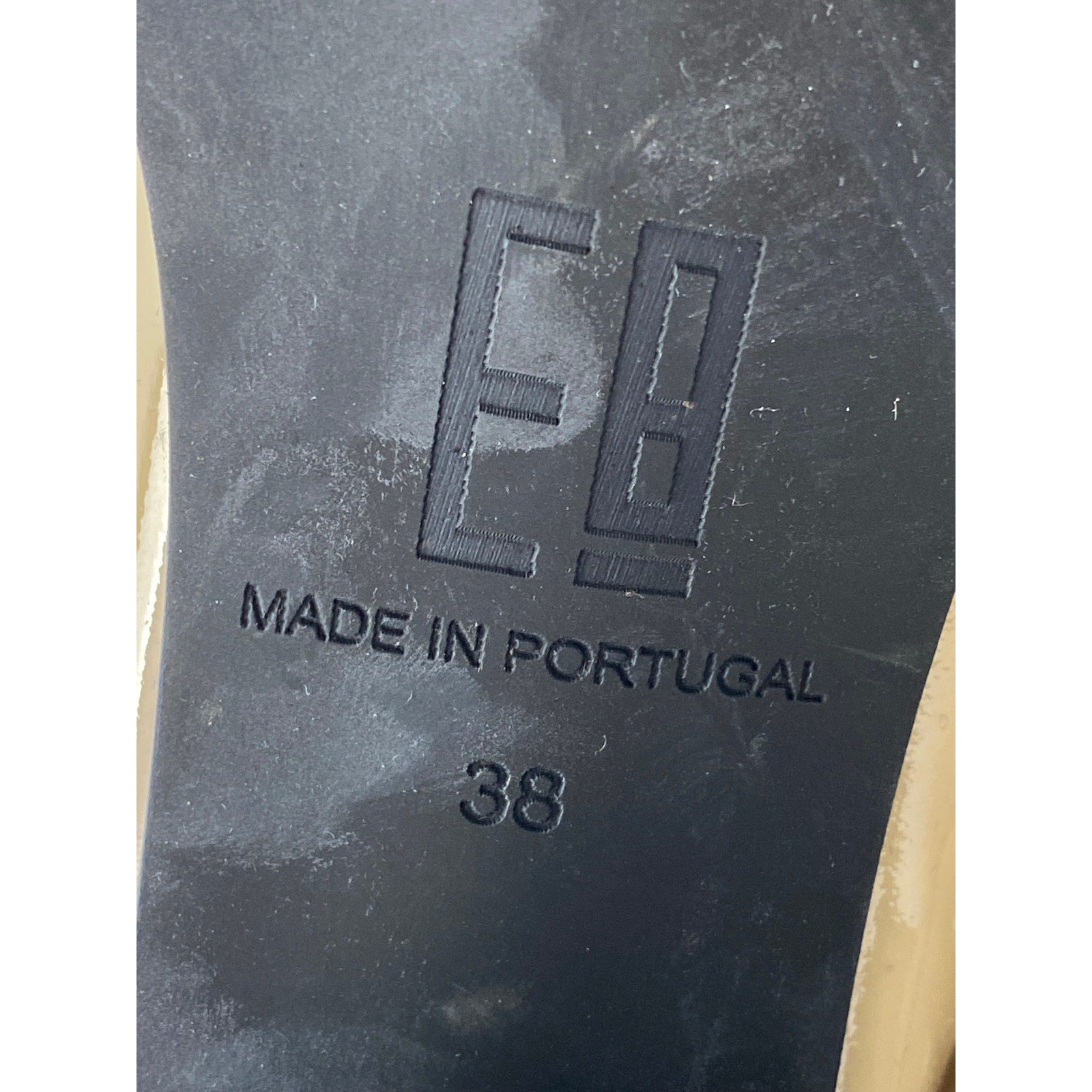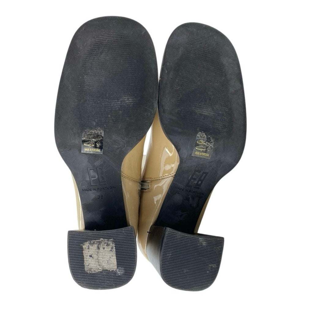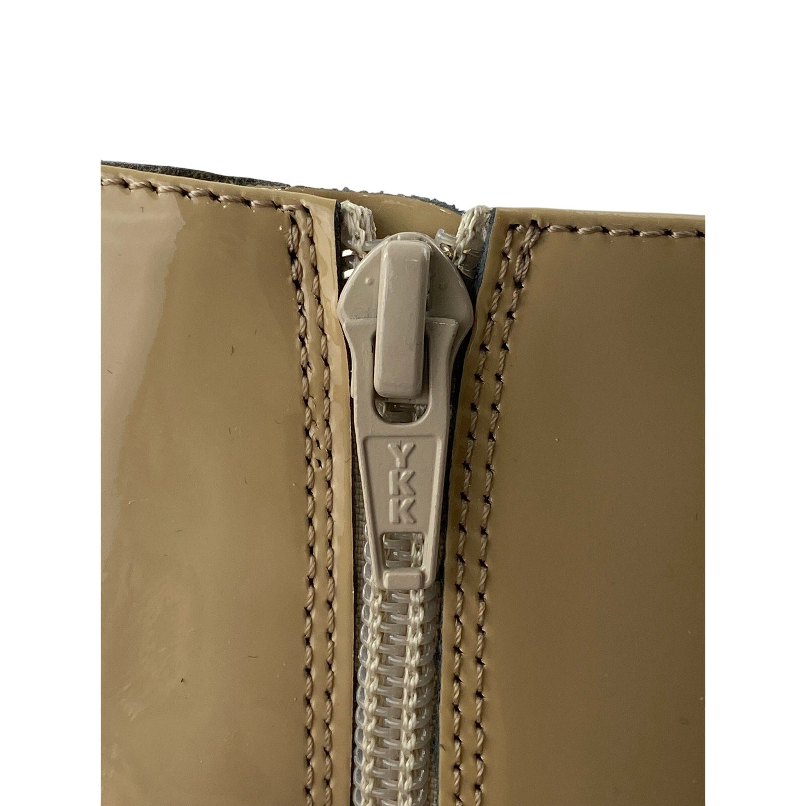 E8 by Miista Beige Patent Leather Block Heel Square Toe Zip Up Ankle Boots 7.5