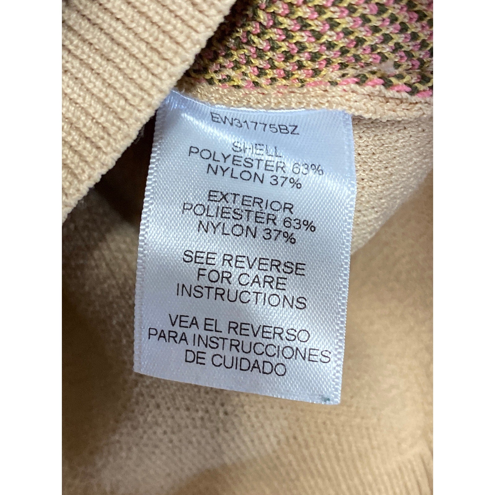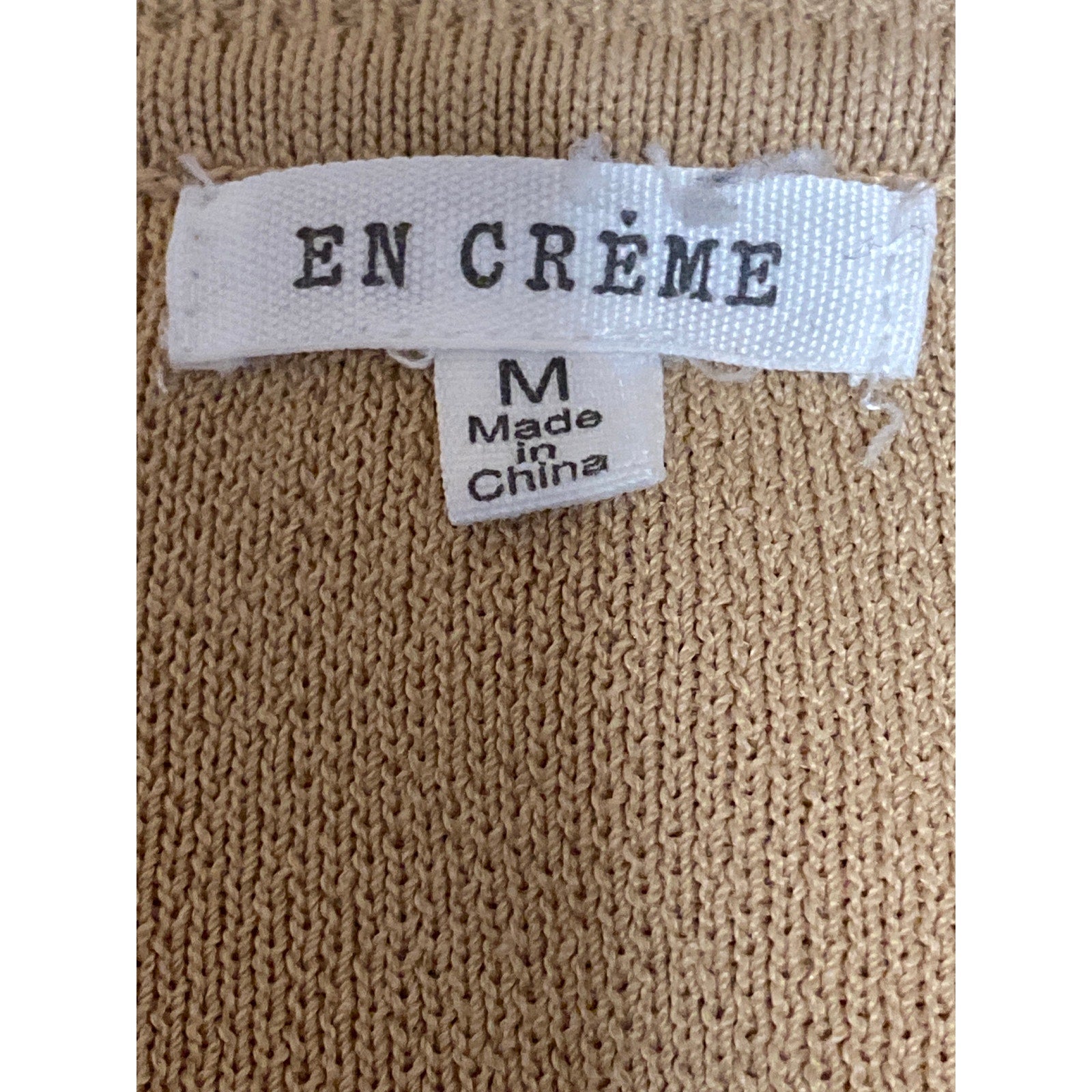 En Creme Women's Beige Tan Floral Long Sleeve Crew Neck Knit Sweater Top Sz M