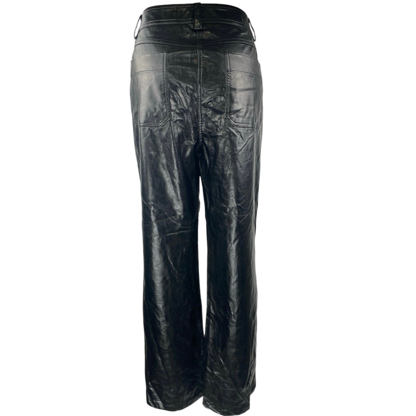 En Saison Women's Black Faux Vegan Leather High Waist Wide Leg Trousers Pants L