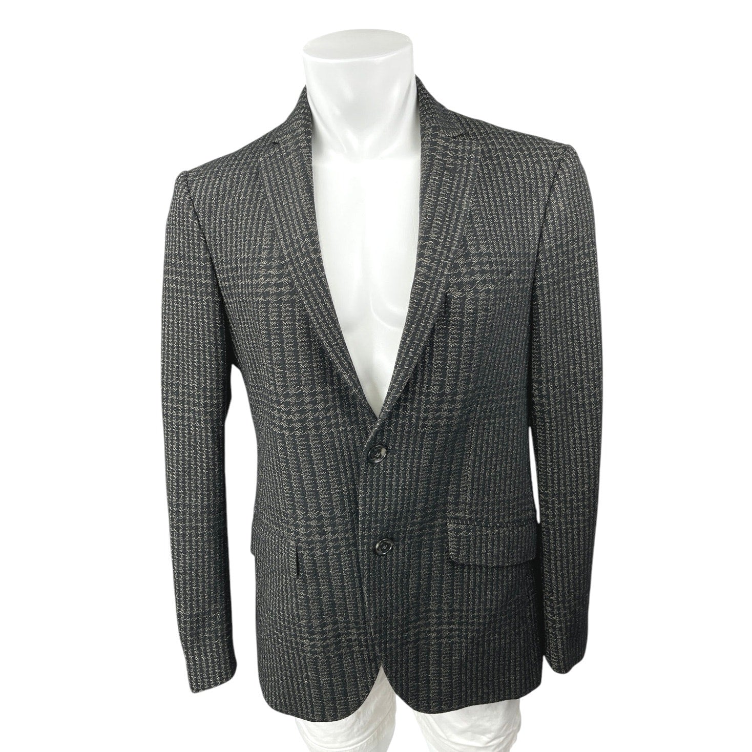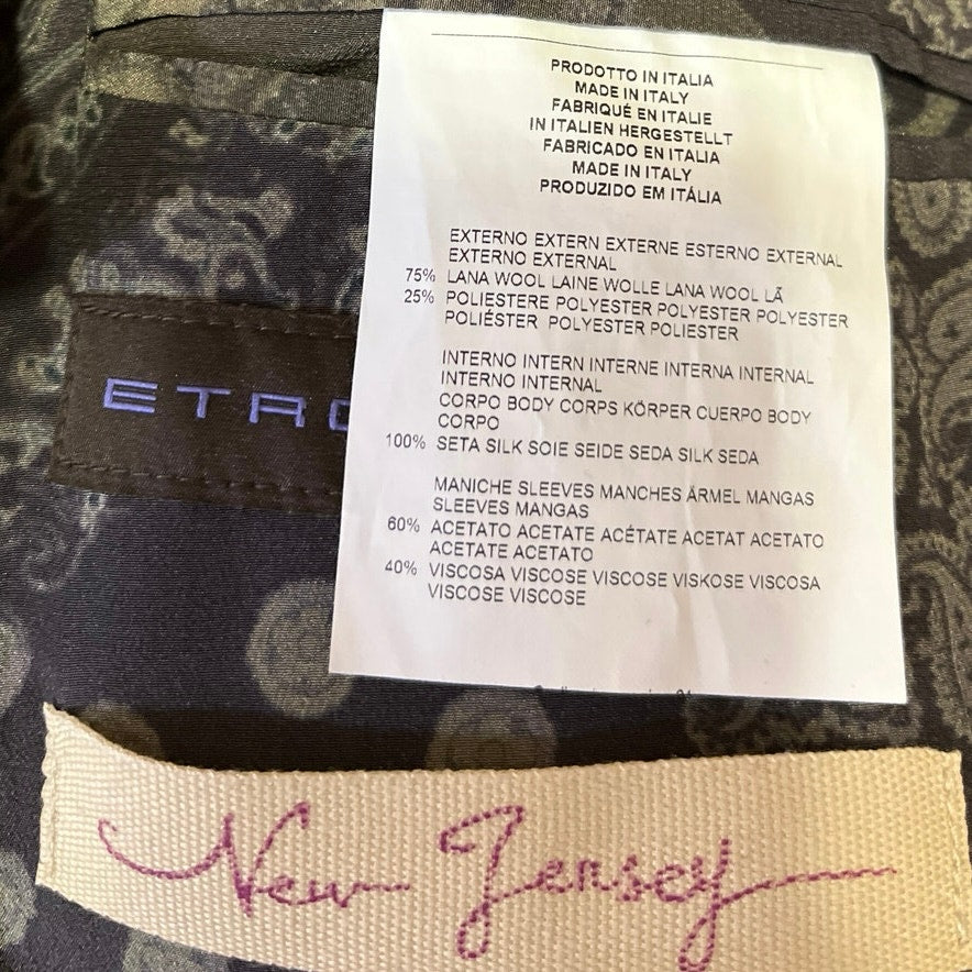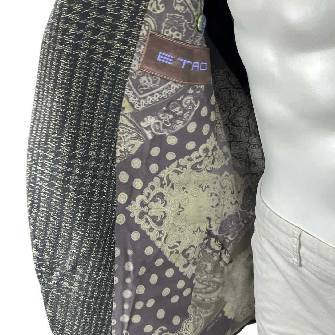 Etro Black Houndstooth Plaid Wool Two Button Long Sleeve Blazer Coat Jacket 52/42US
