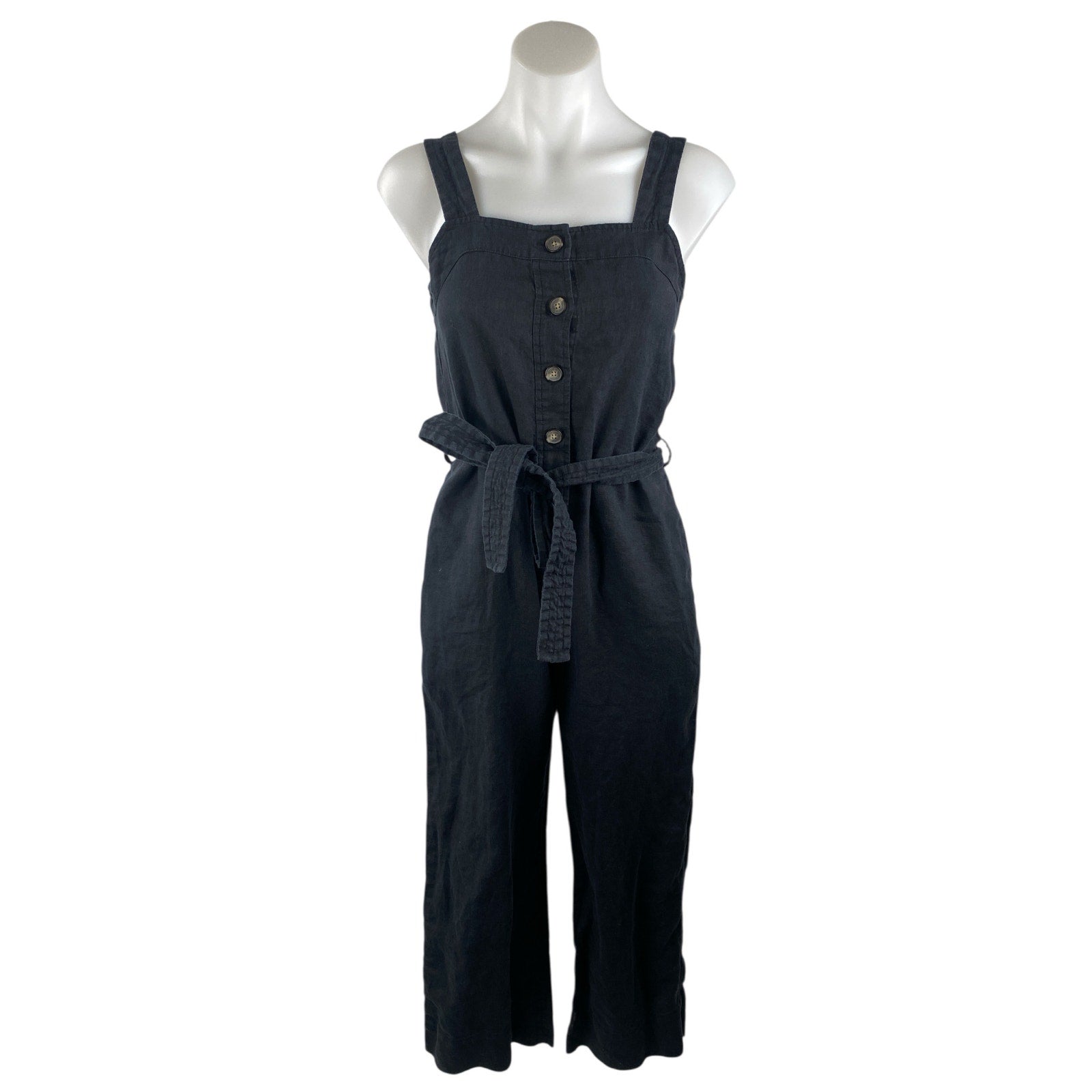 Everlane 100% Linen Square Neck Sleeveless Button Up Wide Leg Jumpsuit Romper 0