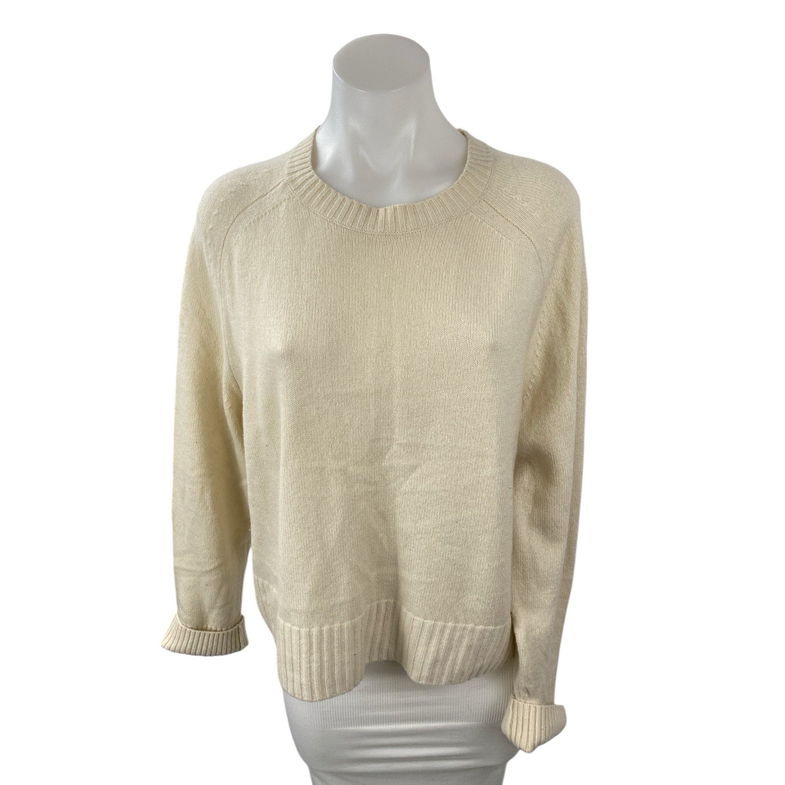 Everlane Women's Cream Cashmere Crew Neck Knit Long Sleeve Sweater Top Size L