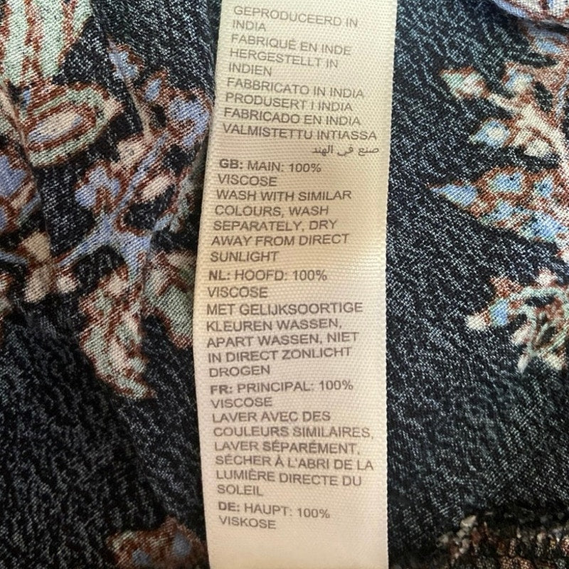 Fat Face Multicolor Brown Black Nate Craft Floral Print 3/4 Sleeve Puff Sleeve V-neck Midi Flowy A-line Dress Size 6