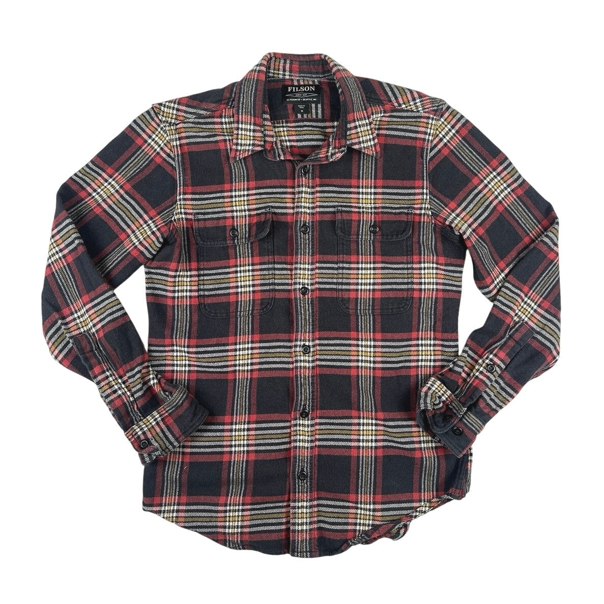 Filson Mens Black Vintage Plaid Checkered Flannel Button Down Jacket Shirt Top M