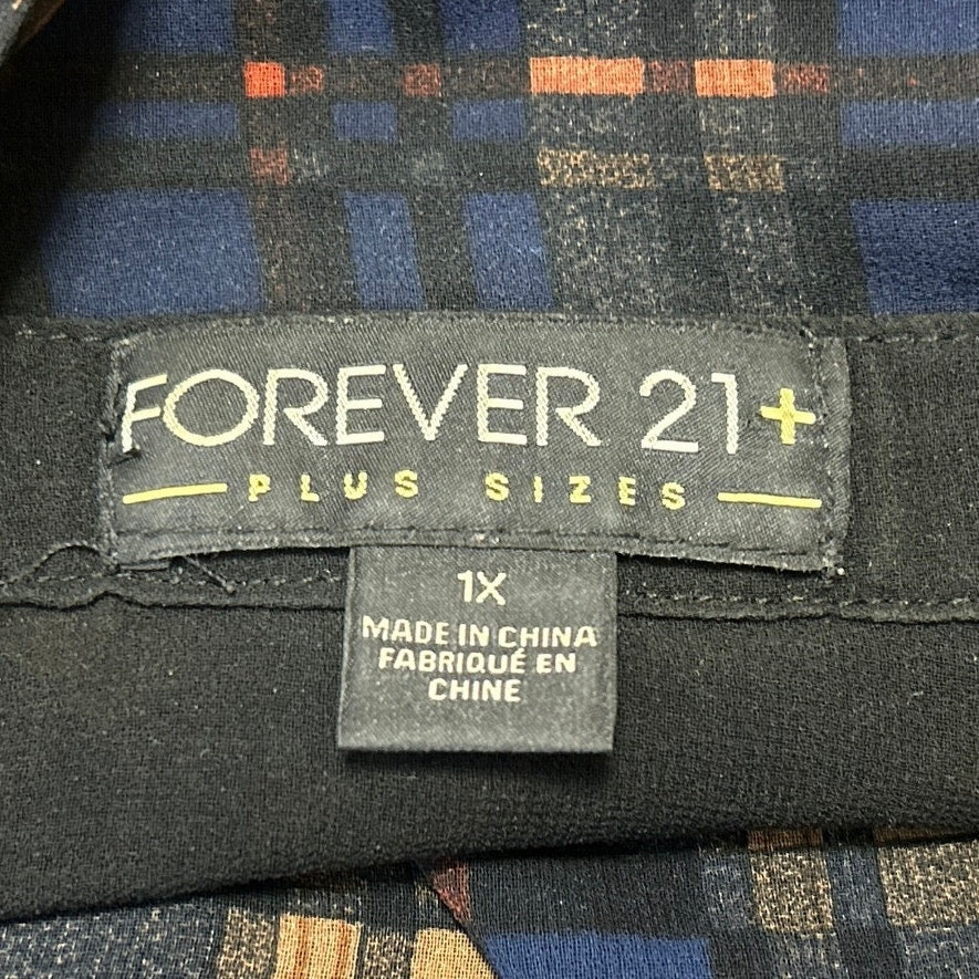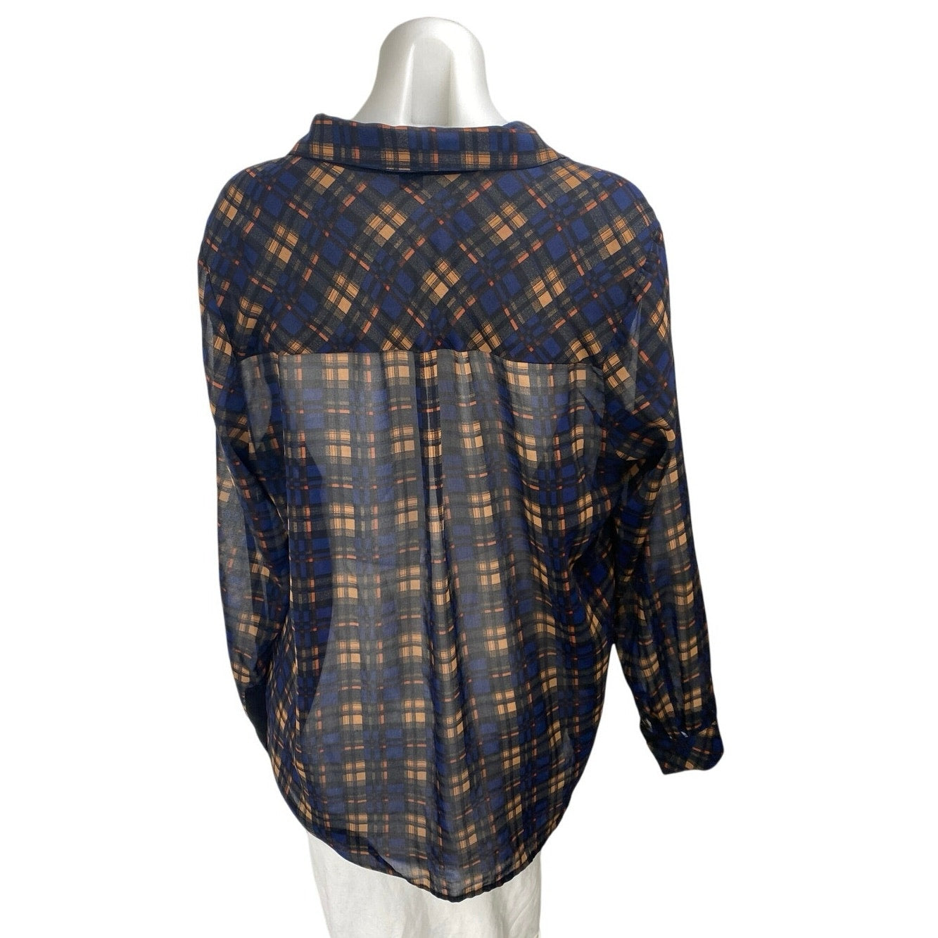 Forever 21 Women's Long Sleeve Plaid Sheer Mesh Button Up Shirt Top Size 1X
