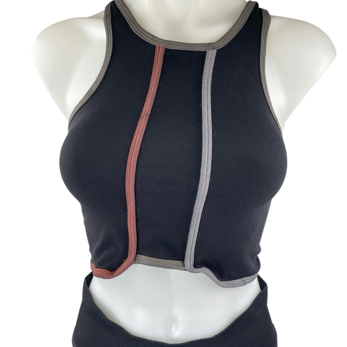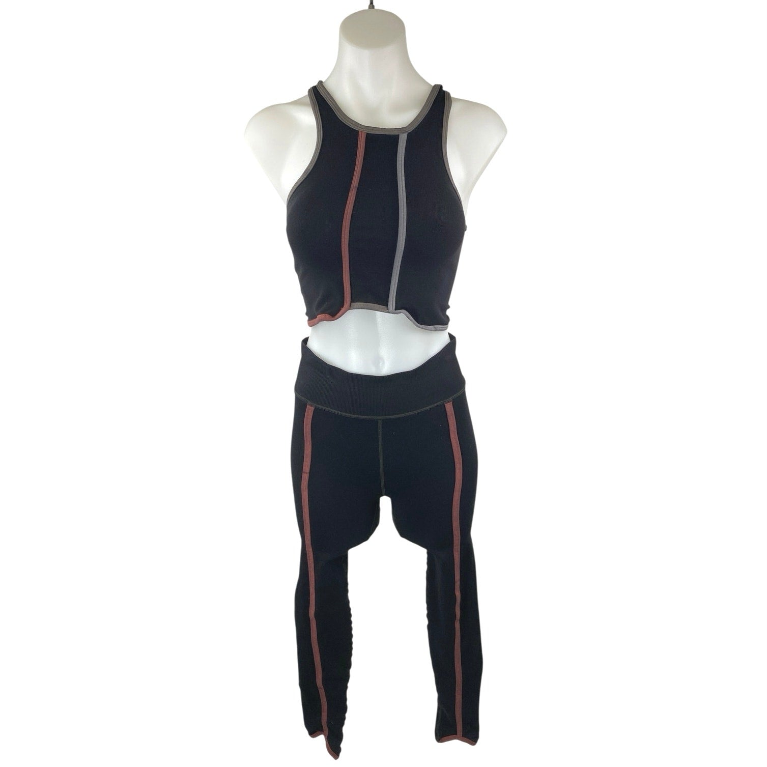 Free People Black Striped Sleeveless Tank & High Rise Leggings Activewear Set XS/S