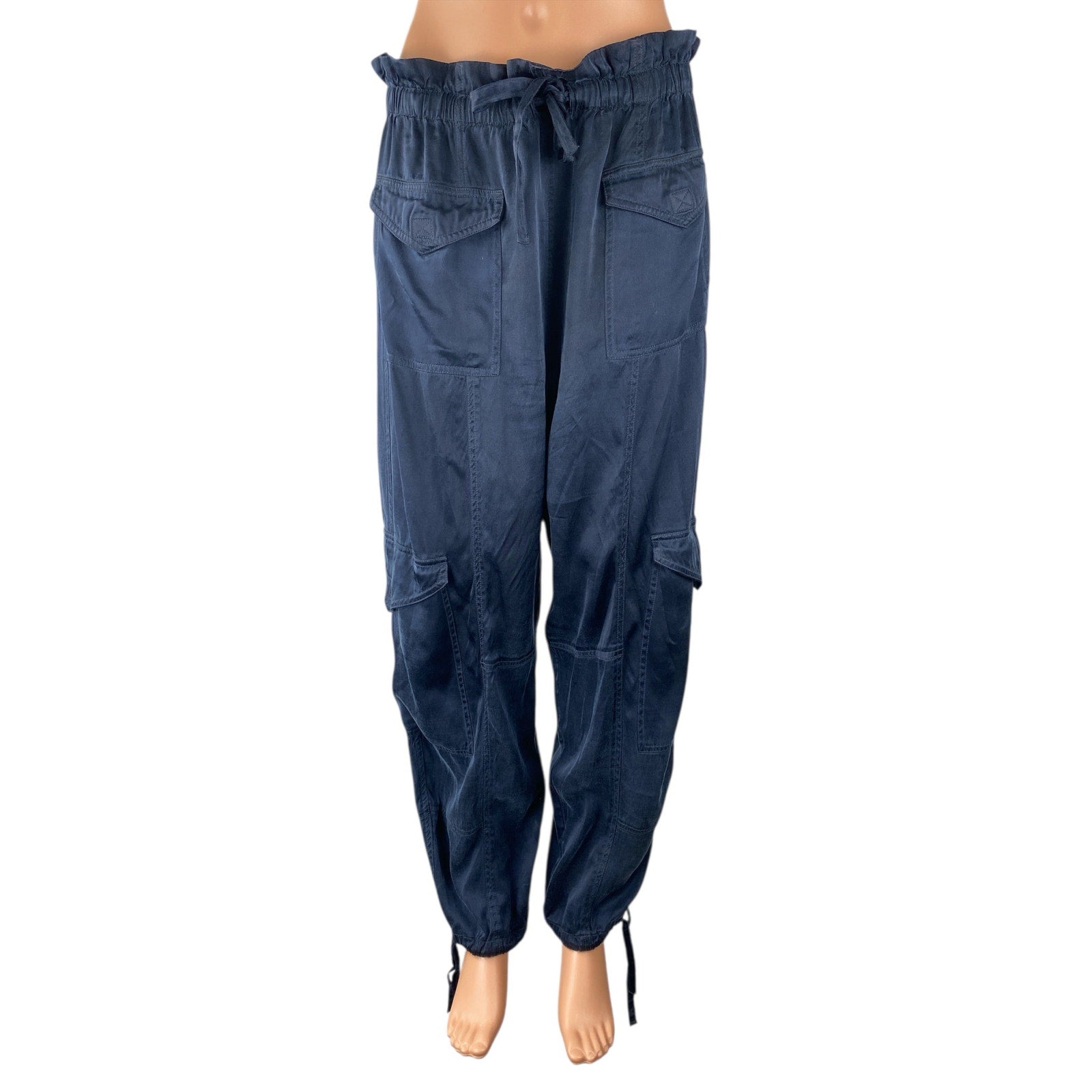 Ganni Blue Washed Twill Satin High Rise Paperbag Cargo Jogger Trousers Pants 42