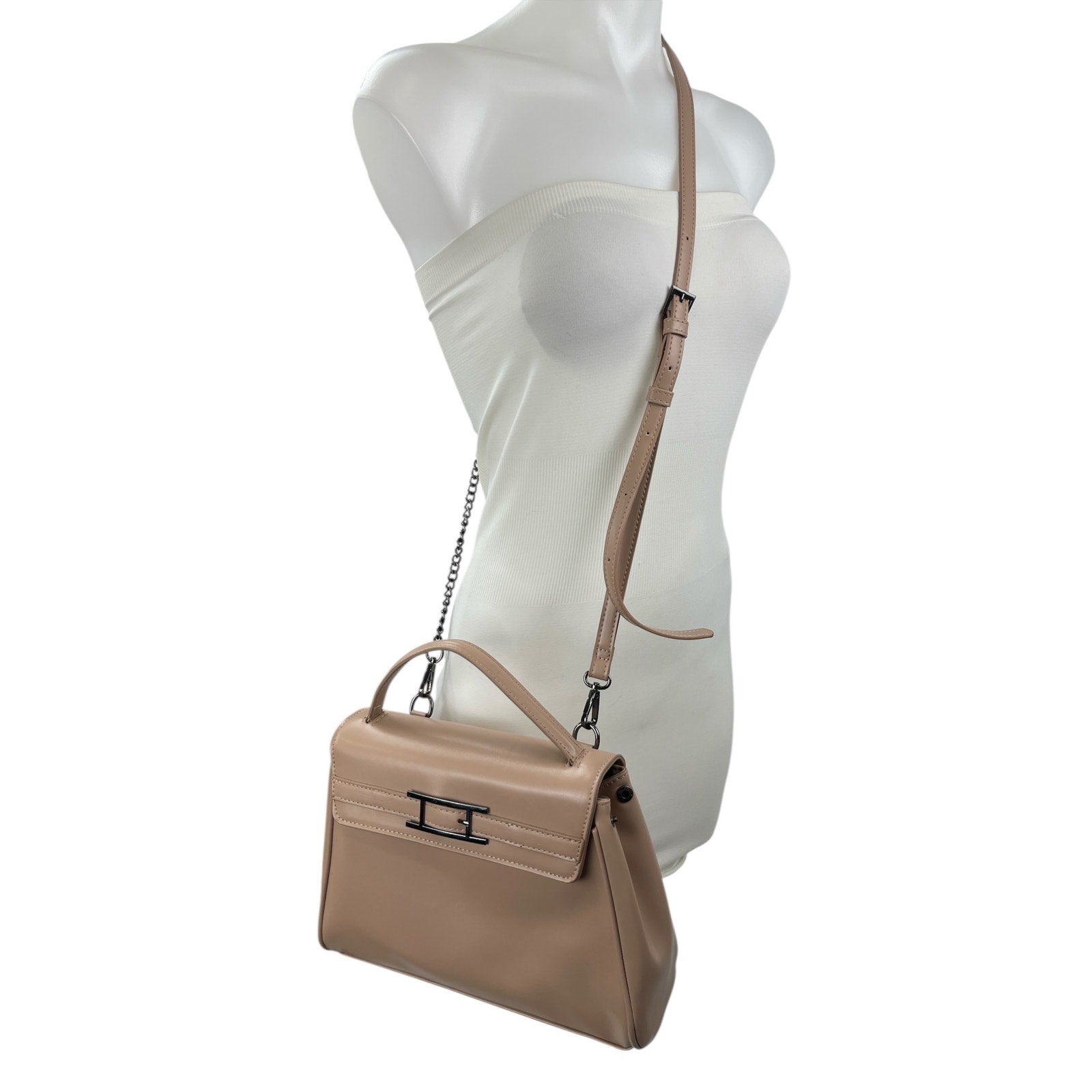 H by Halston Women's Beige Faux Leather Began Crossbody Satchel Handbag OS