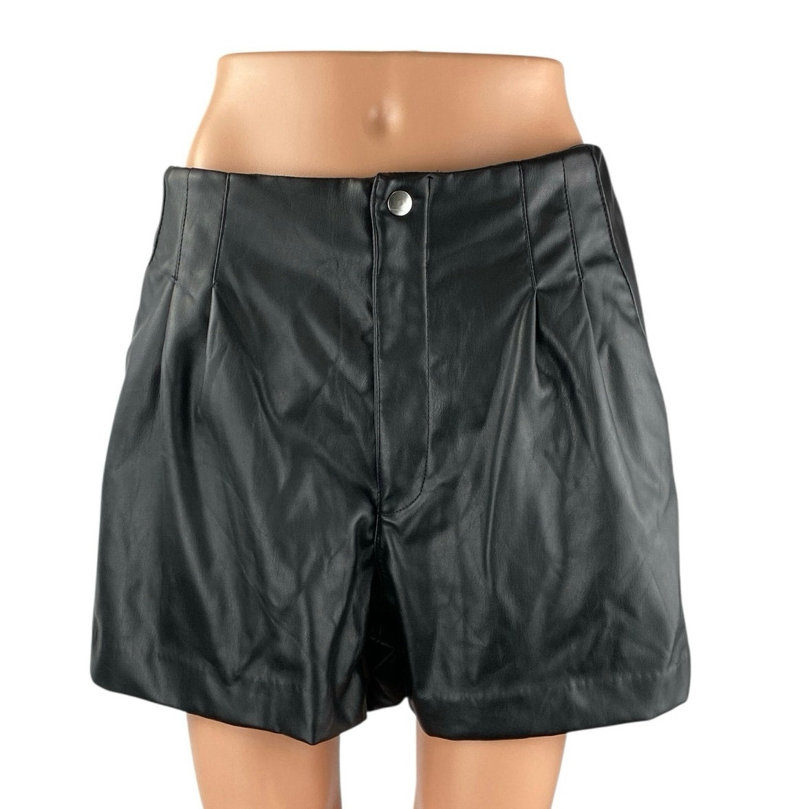 H&M Divided Womens Black Faux Leather Vegan High Rise Casual Mini Shorts Size 10