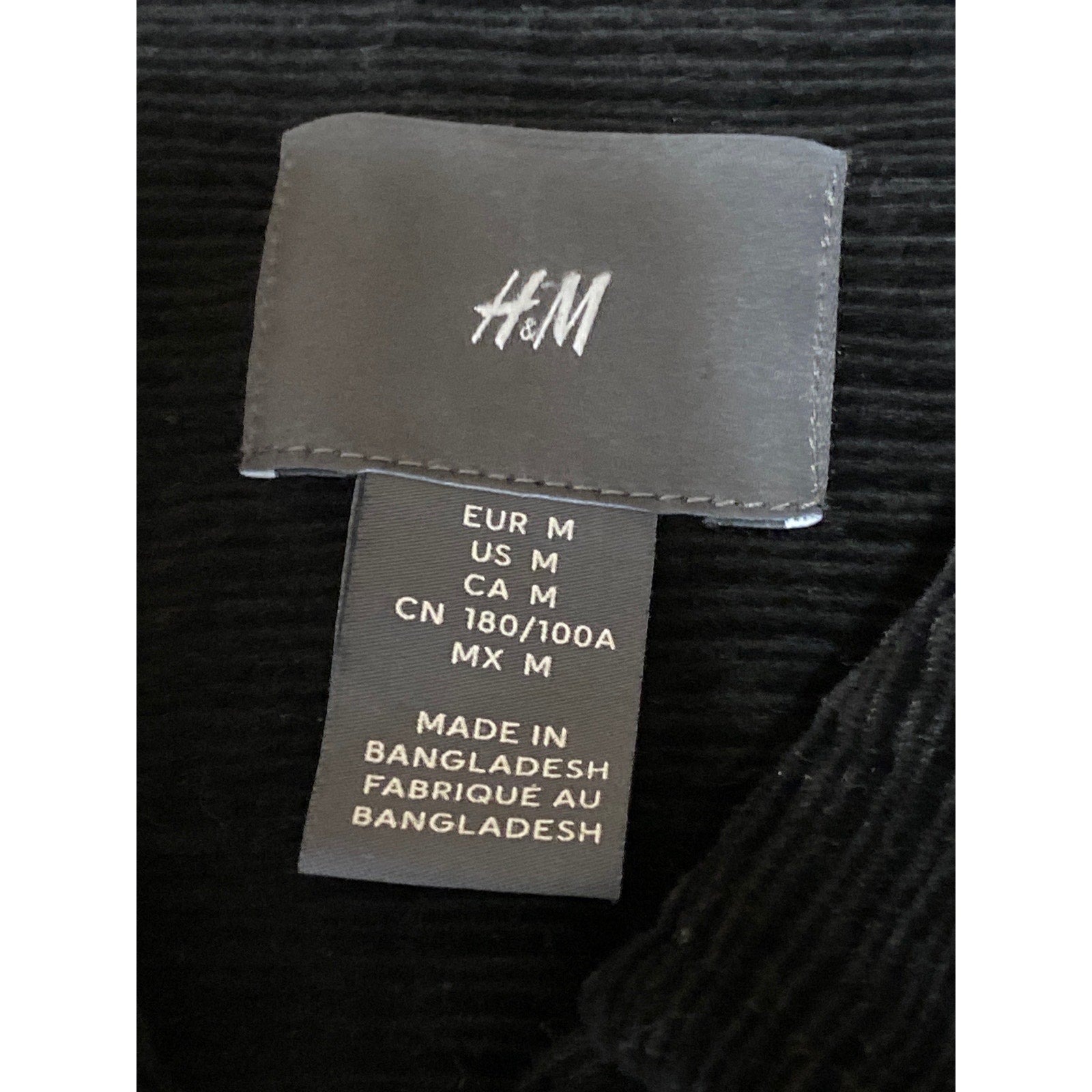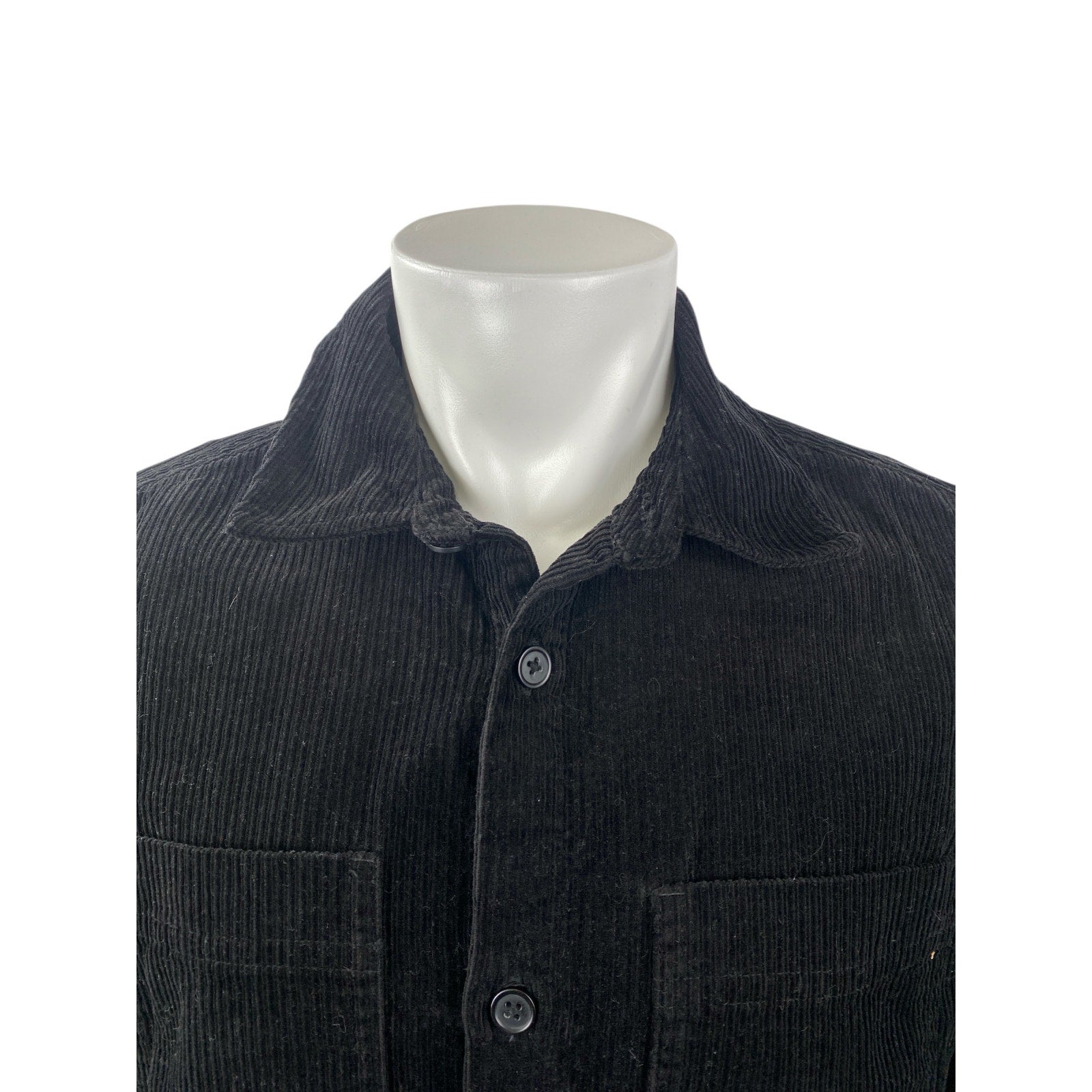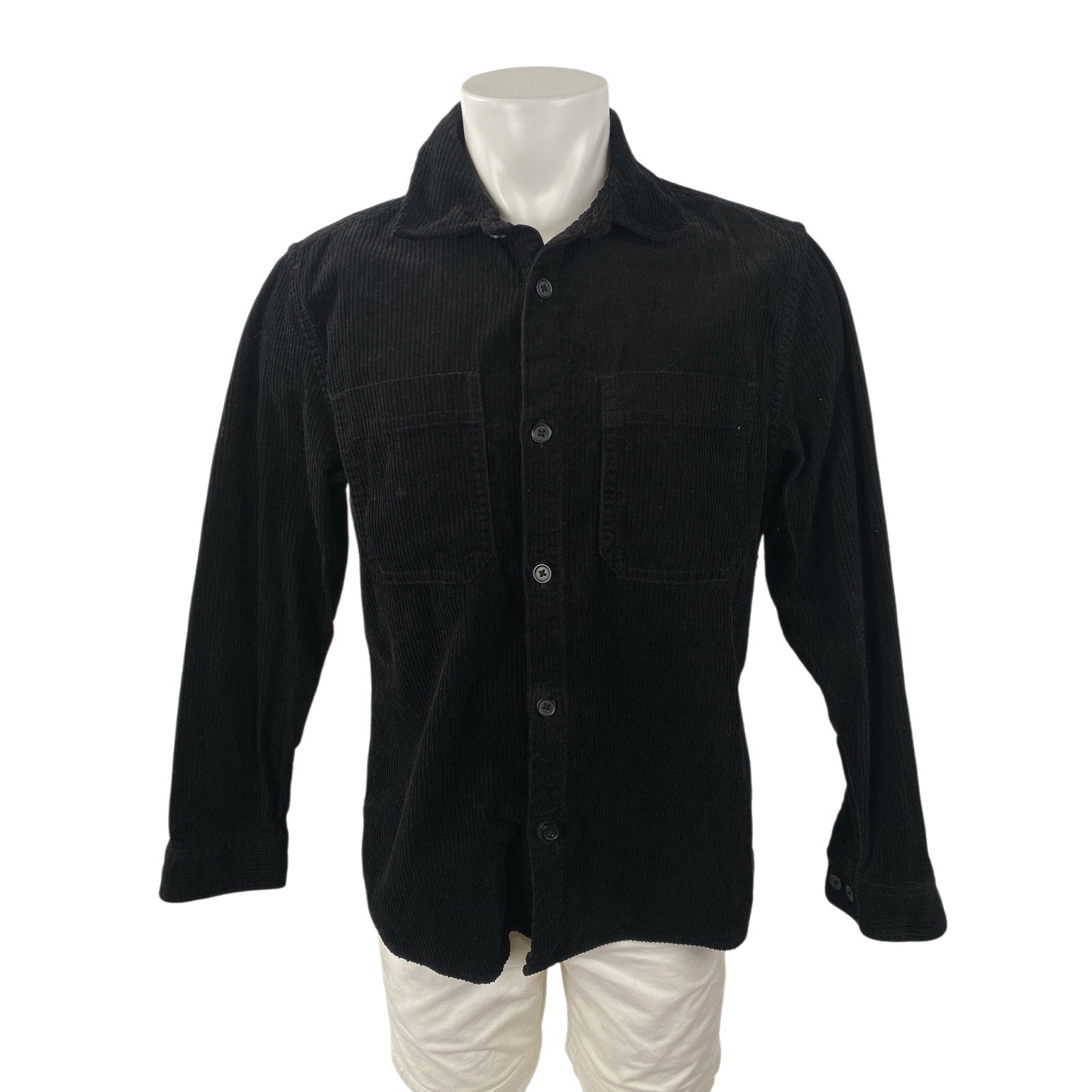 H&M Men's Black Corduroy Collared Long Sleeve Button Down Shirt Shacket Top Sz M