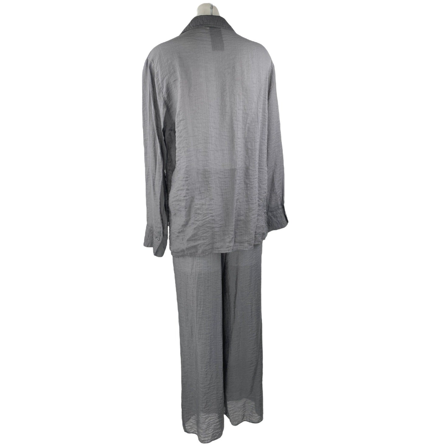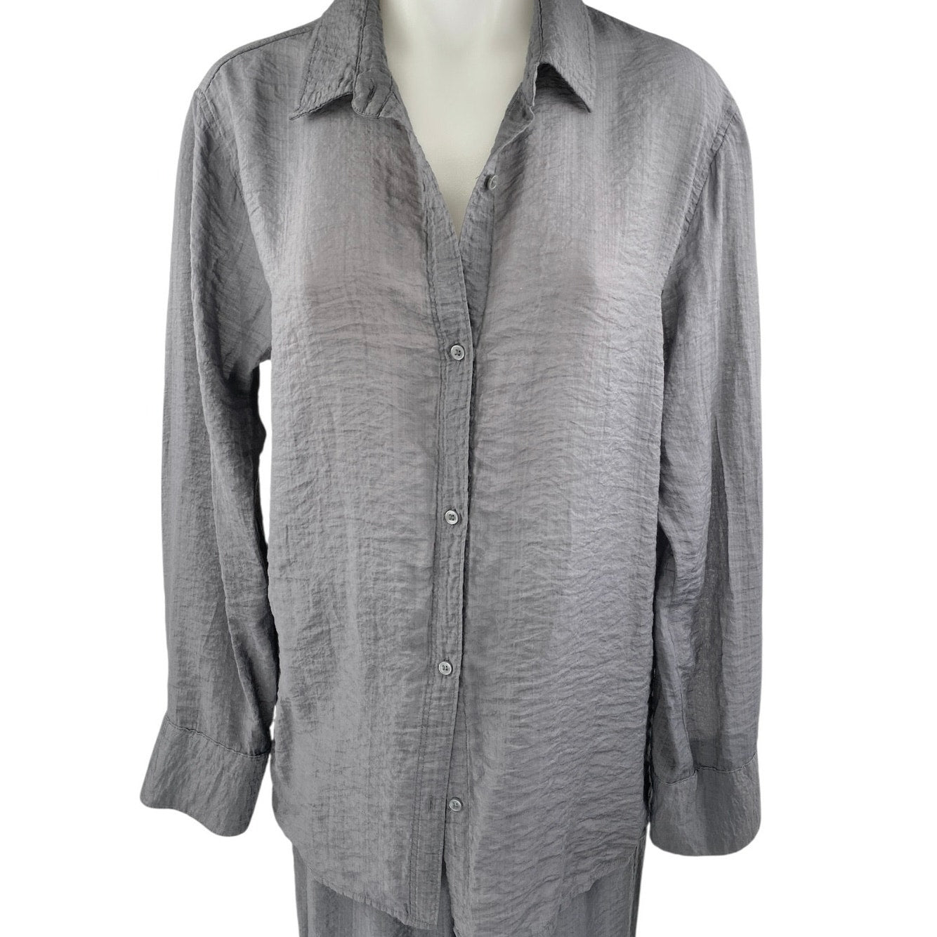 H&M Women's Gray Button Down Long Sleeve Shirt & Wide Leg Pants Matching Set Size S