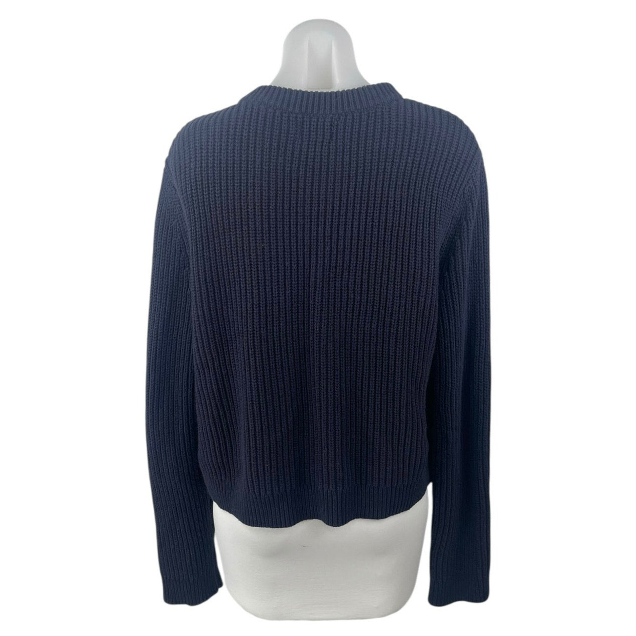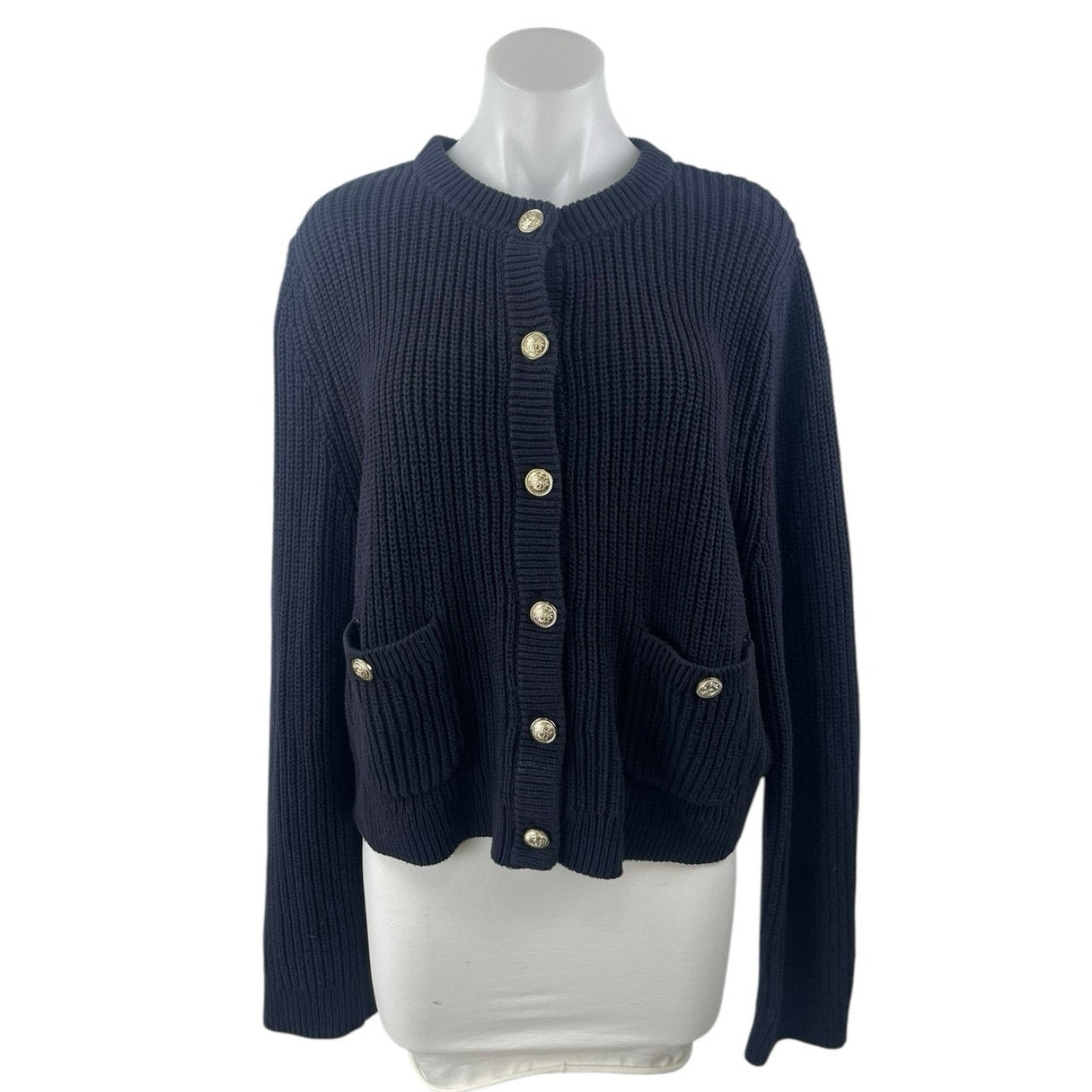 H&M Women's Navy Blue Ribbed Knit Long Sleeve Button Down Cardigan Sweater Top M